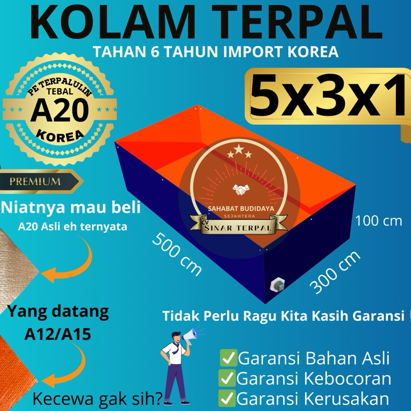 BUSAN Kolam Terpal A20 500x300x100 / 300x500x100 / 5x3x1 / 3x5x1 Tebal A20 / A15 / A12 / A8 / A5 / A3 Terpal Kolam Terpa