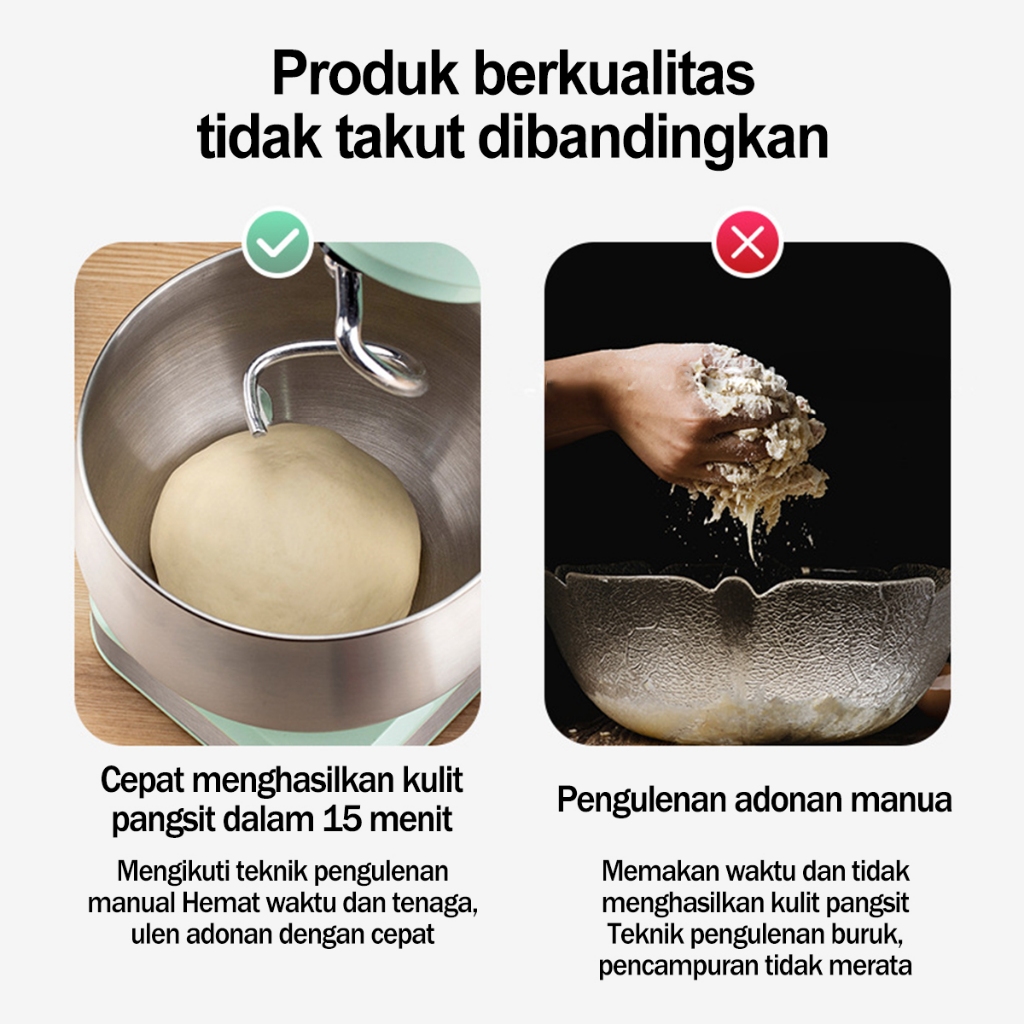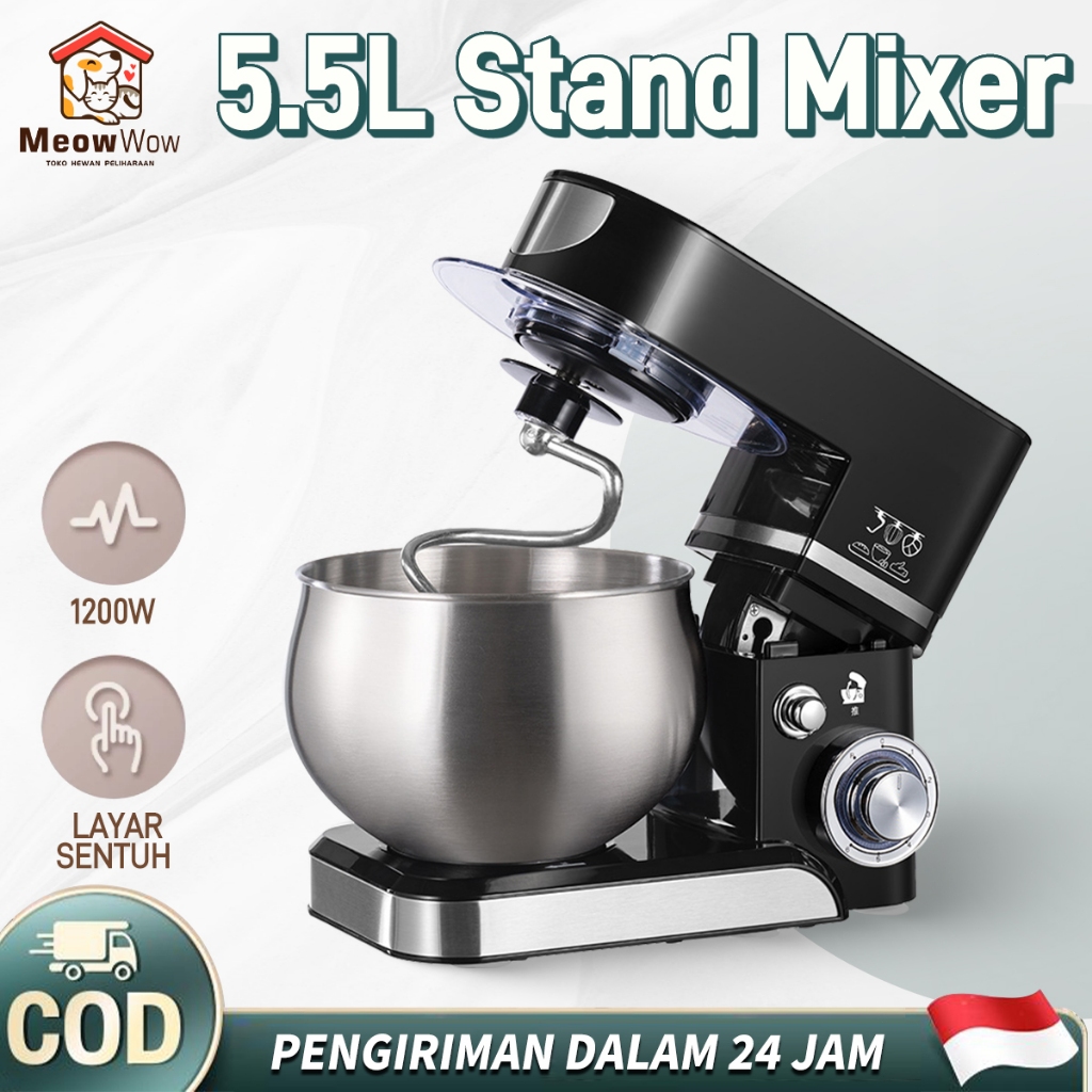 Stand Mixer 5.5 Liter Variable Low Watt Tech - 6 Speed Stainless Steel dengan 3 Alat Pengaduk