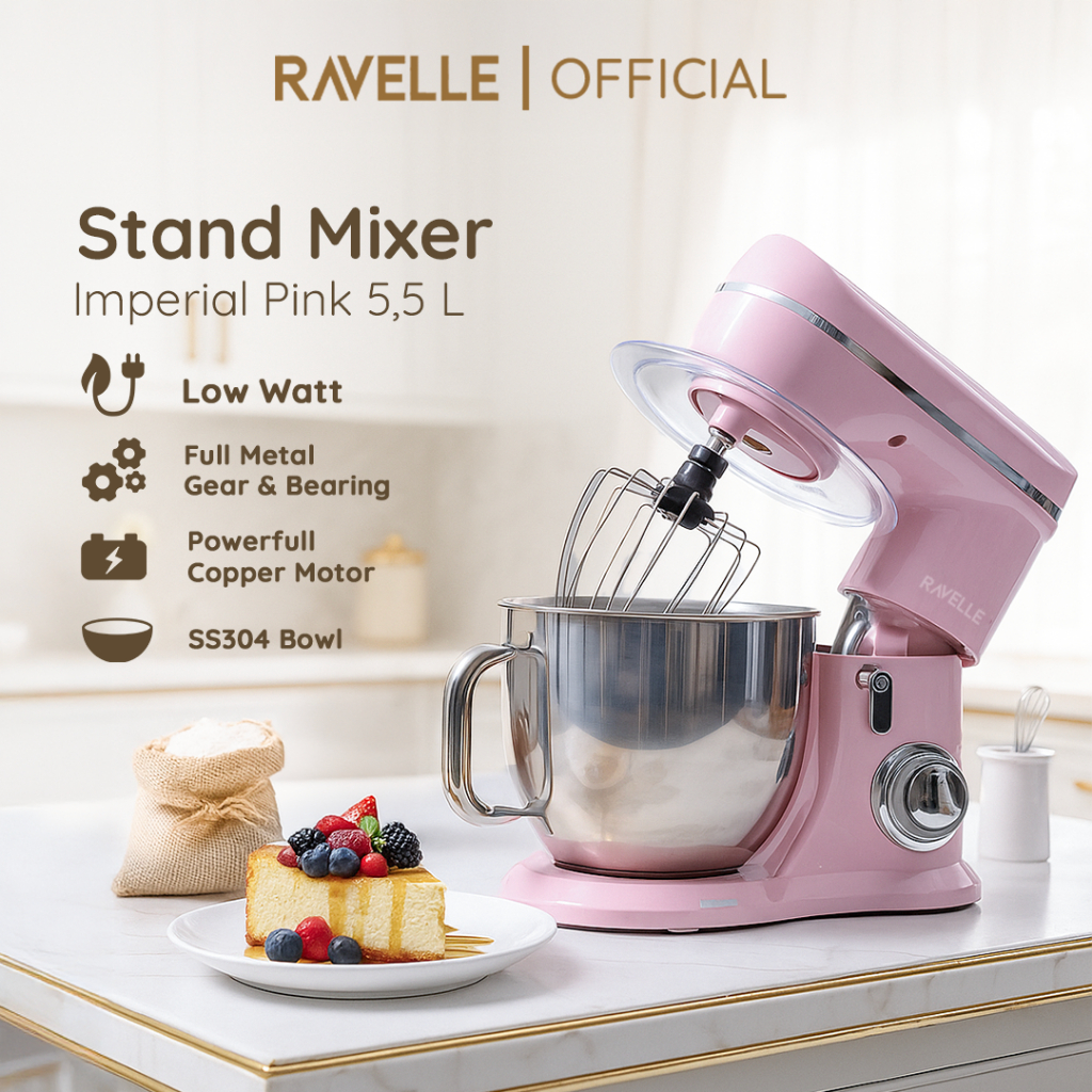 Ravelle Stand Mixer Standing Mixer Kapasitas 5,5L 5,5 L 5,5 Liter LOW WATT Original GARANSI RESMI