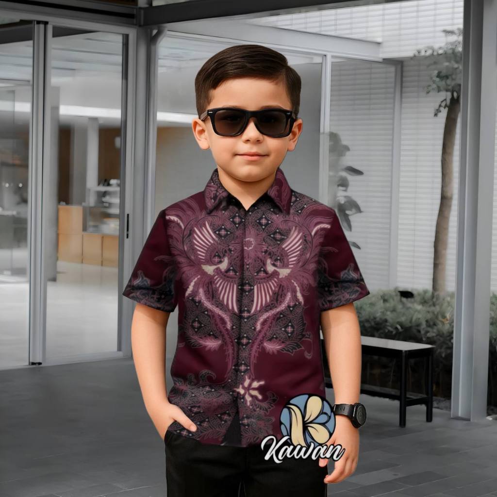 kemeja anak PUSOKO Kemeja Batik Anak Laki Laki Lengan Pendek Kekinian Modern Keren Lucu TK SD SMP M L XL XXL