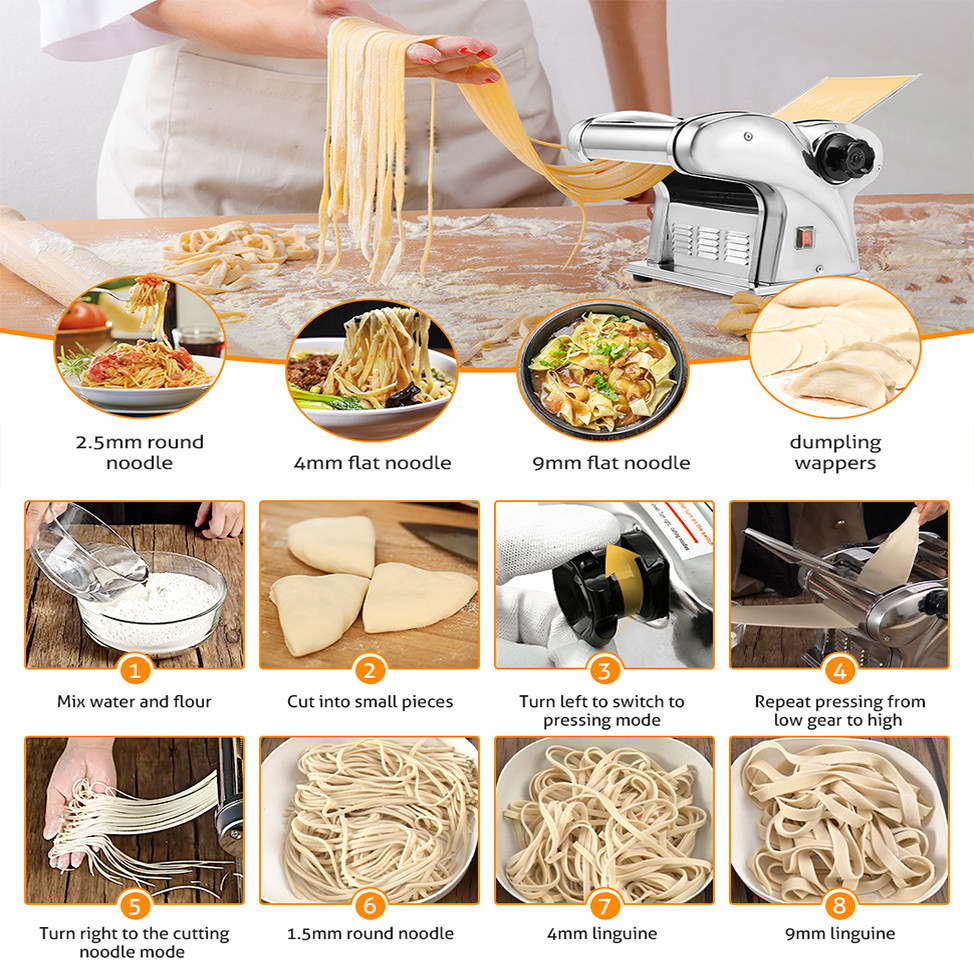 (gratis 4 hadiah)Mesin mie listrik kue bawang stainless gilingan mie listrik 135W Listrik Pembuat Mie 2/3 Pisau Level 9