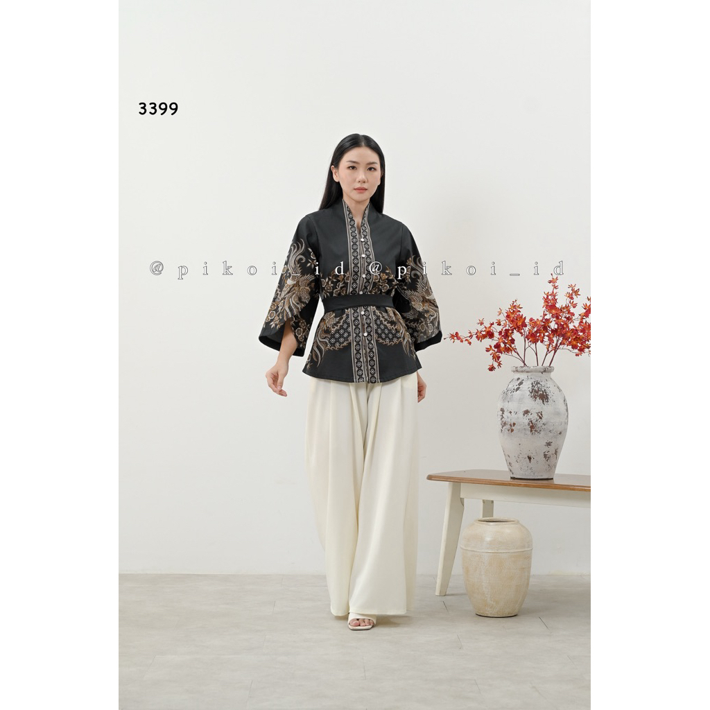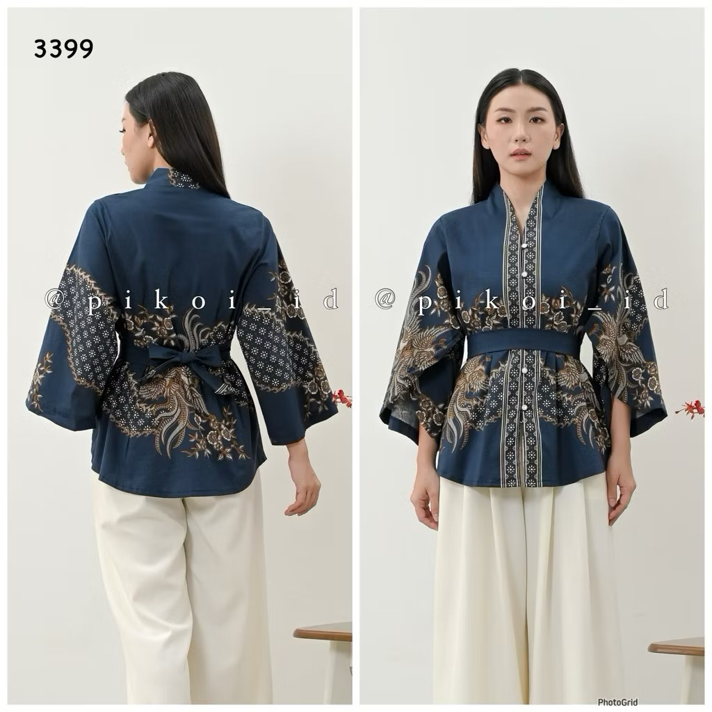 Atasan batik modern lengan panjang kimono full kancing / baju batik wanita busui / atasan ikat 3399