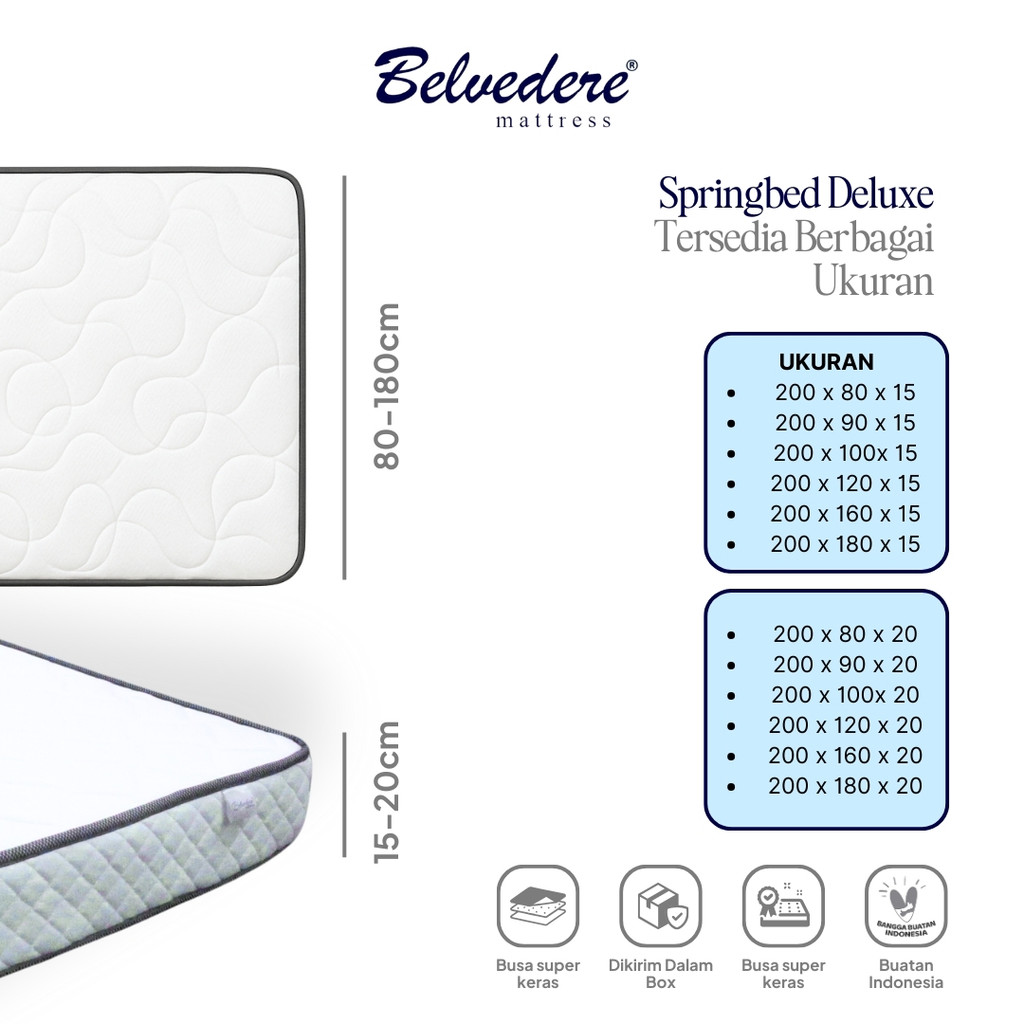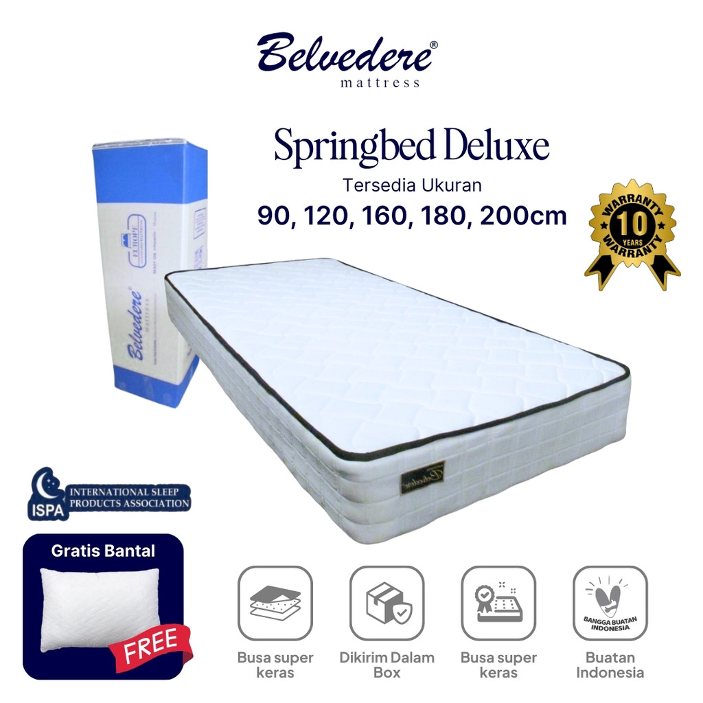 Belvedere Springbed Deluxe dalam Box Free Bantal / Bonel Spring Support / Garansi Per 10 tahun
