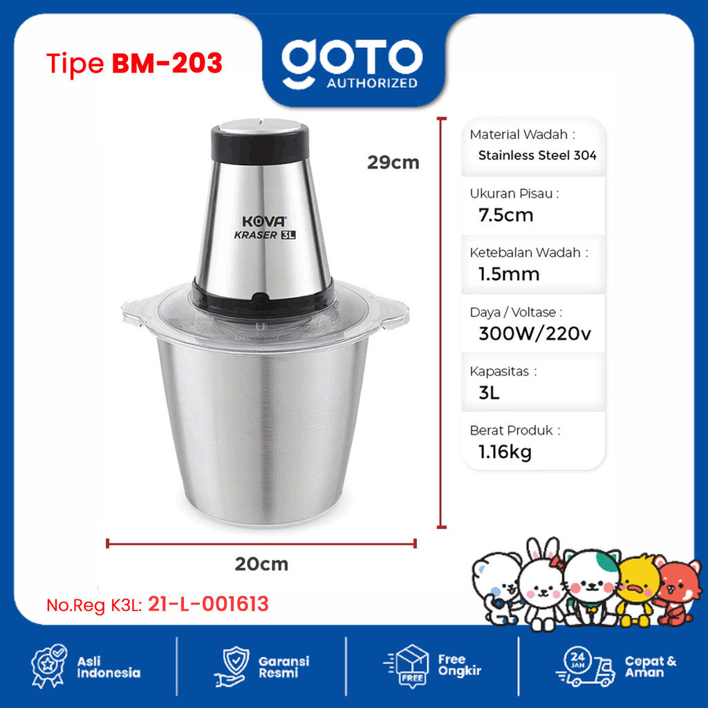 Goto Kova Meat Grinder Kraser 3L Blender Food Chopper Penggiling Daging Sayur