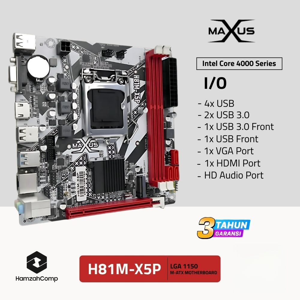 Motherboard H81 / H81M X5P NVME DDR3 Socket LGA 1150 MATX Motherboard Maxus