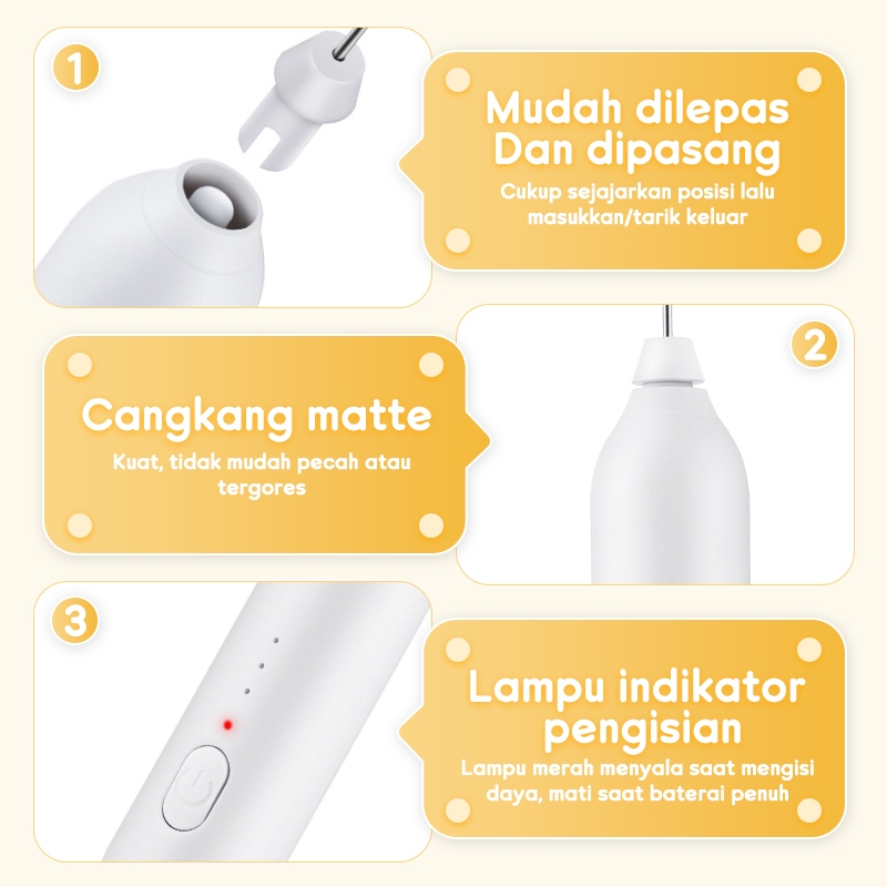 Hand Mixer Mini Mixer Pengocok Susu Milk Frother High Speed Rechargeable Type-C