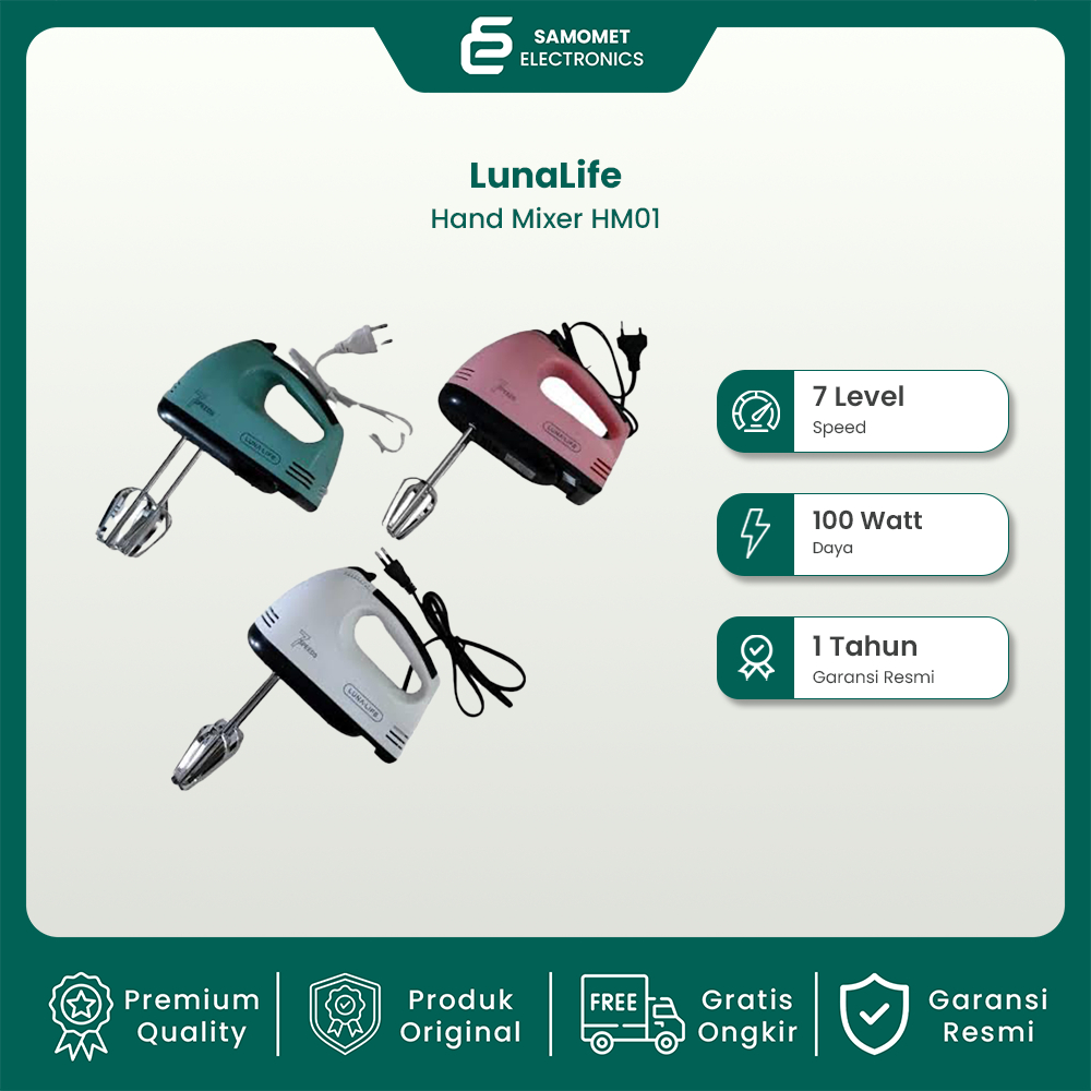 LUNALIFE Hand Mixer 7 Tingkat Kecepatan SNI 100W Official Warranty Pengaduk Adonan Kue Garansi 1 Tahun