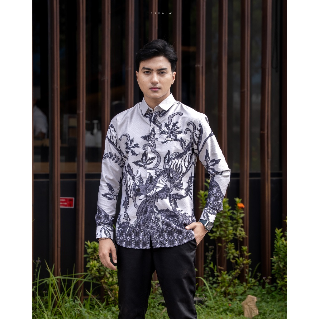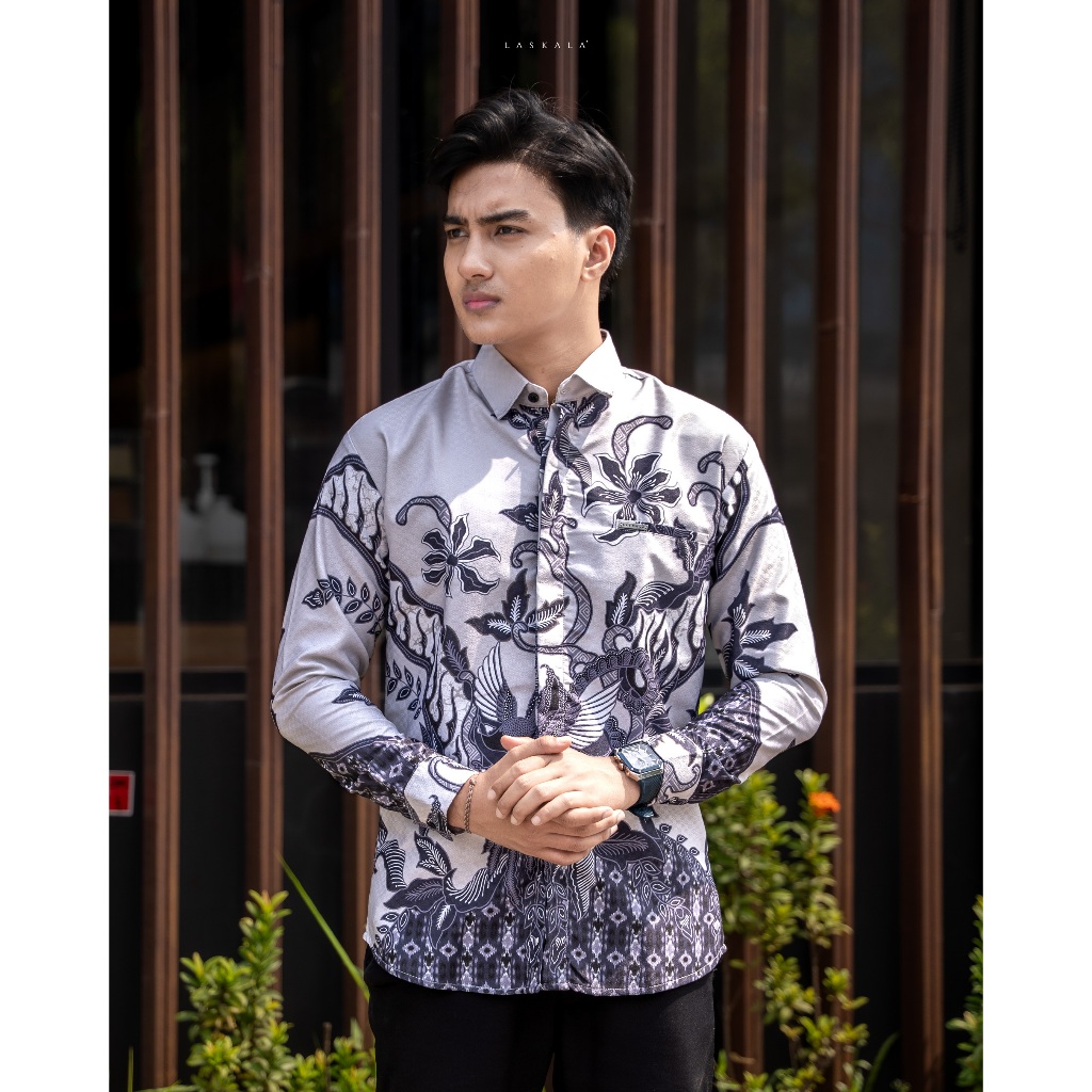 Laskala Batik Premium Tondano Grey Kemeja Batik Pria Slimfit Lengan Panjang