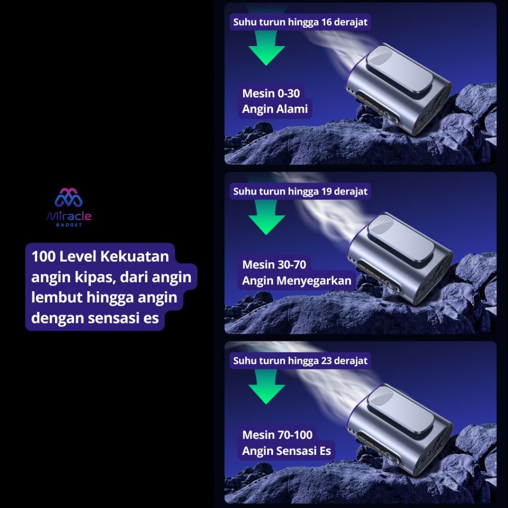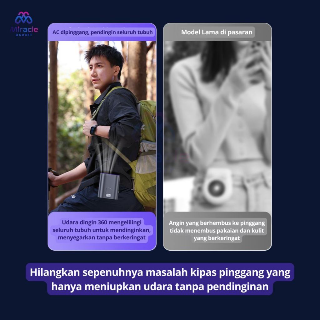 MIRACLE Kipas Angin Pinggang Turbo 100 Level | Metalic Fan + LED Senter Outdoor Multifungsi