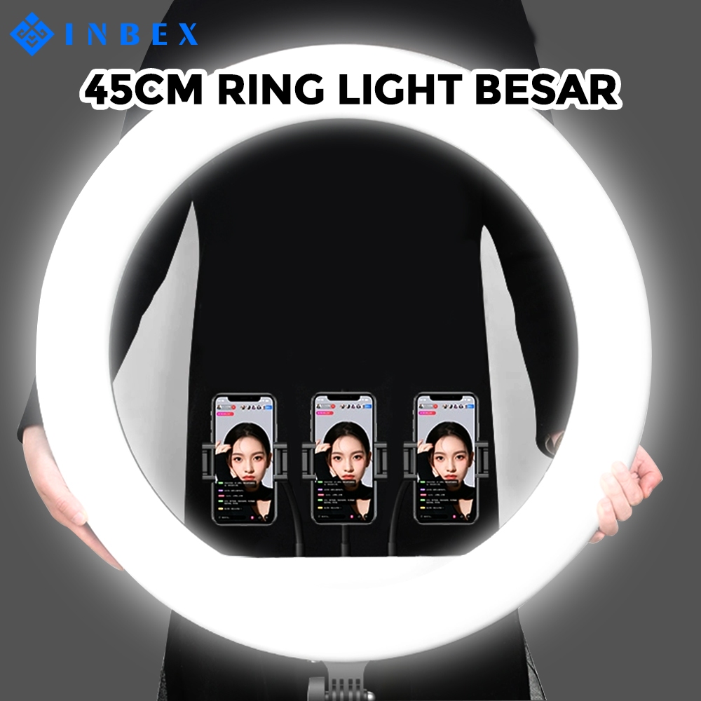 【✨Besar】INBEX 45CM Ring Light Remote 3 HP Besar Beauty ringlight Lighting Live streaming Video Lampu Konten Kreator 3 Holder HP
