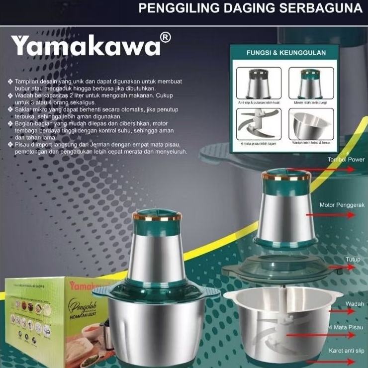 TD/YAMAKAWA Penggiling Daging Serbaguna 2 Liter Stainless / Food Chopper / Meat Grinder