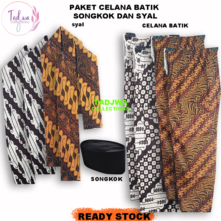 SETELAN CELANA BATIK BOIM PAKET SYAL DAN PECI ANAK DAN DEWASA