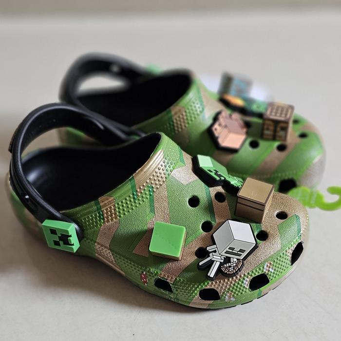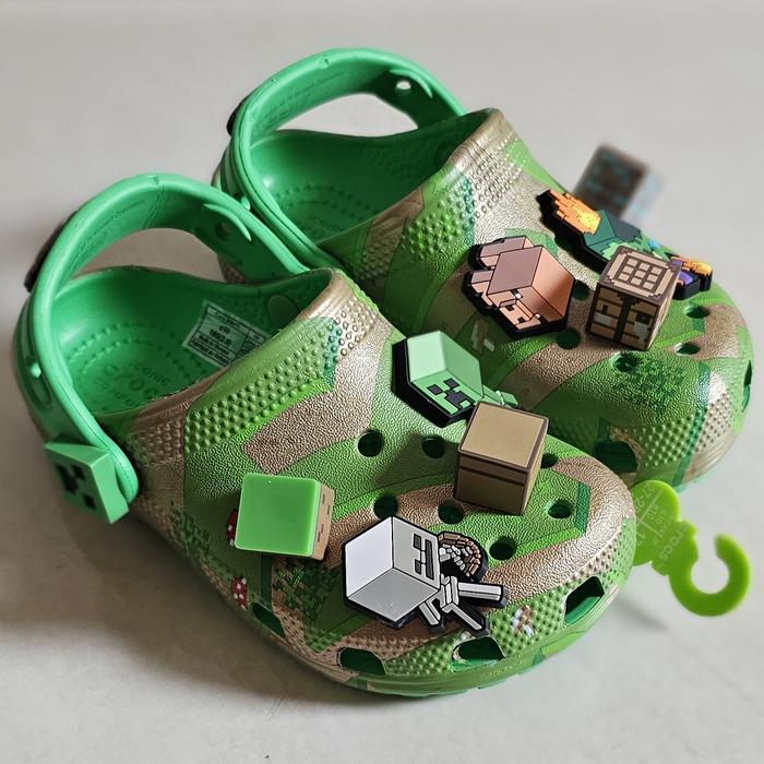 [PROMO] SANDAL CROCS CLASSIC MINECRAFT ELEVATED CLOG KIDSENDAL ANAK UNISEXHIJAU C10