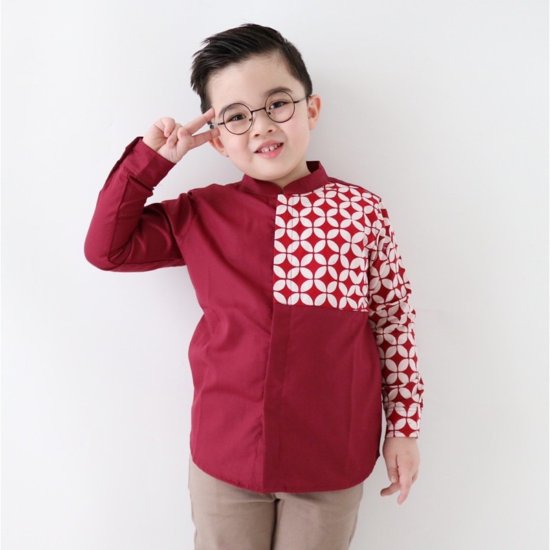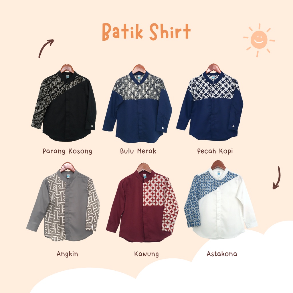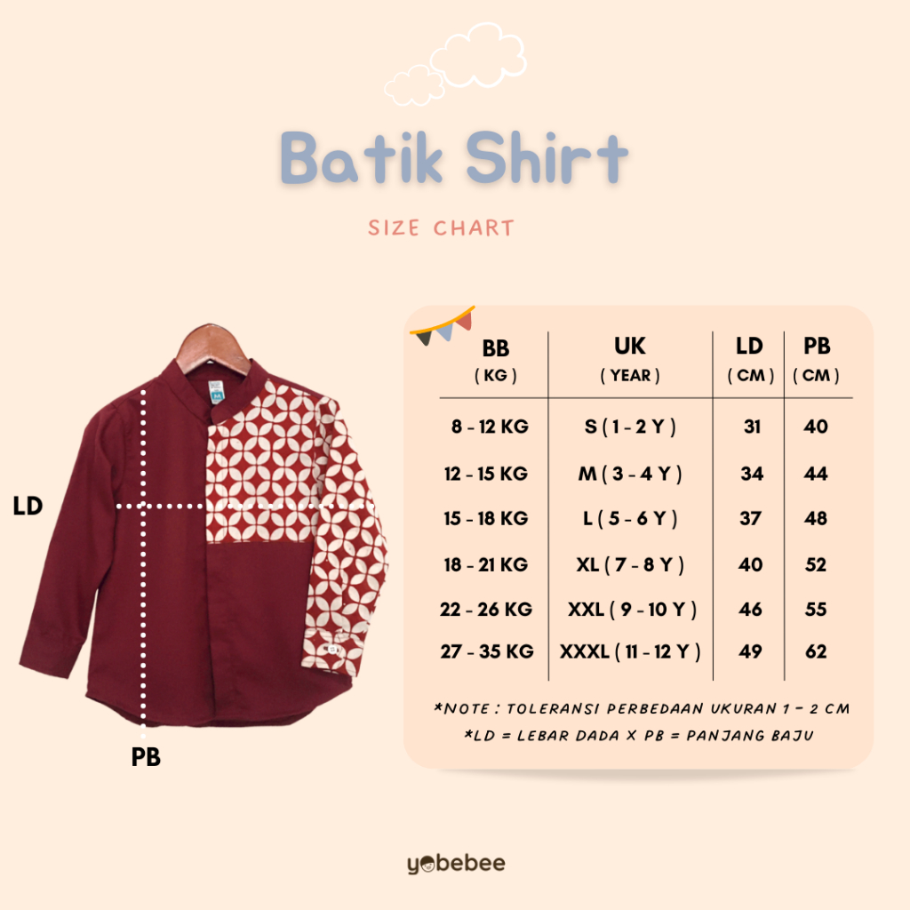 Yobebee Kemeja Batik Tangan Panjang Anak Laki Laki Usia 2 4 6 8 10 12 Tahun Baju Atasan Kids Casual Formal Katun Kemeja