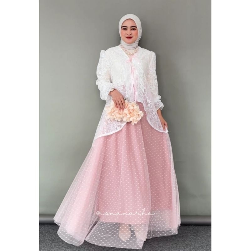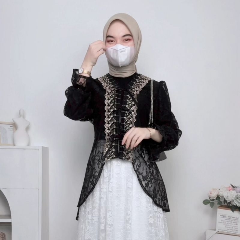 Wisa Outer Tunik Tille Brukat Cardigan Tille Brokat Lengan Panjang Kebaya Tunik atasan outher brukat Outer Brokat Bordir Kondangan Lebaran