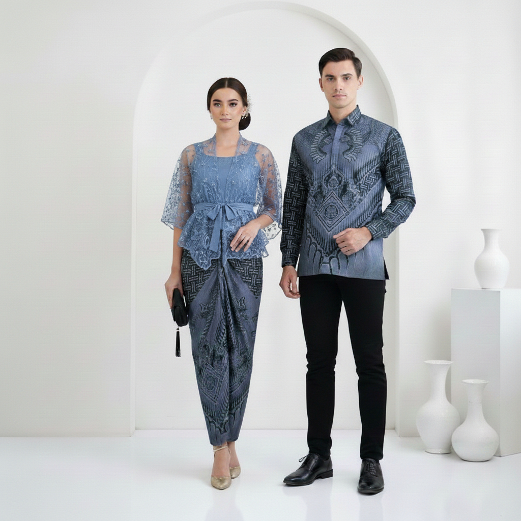 (Kebaya & Kemeja) Set Kebaya Couple Pasangan Brukat Tile Batik Modern Baju Kondangan Wanita Kekinian