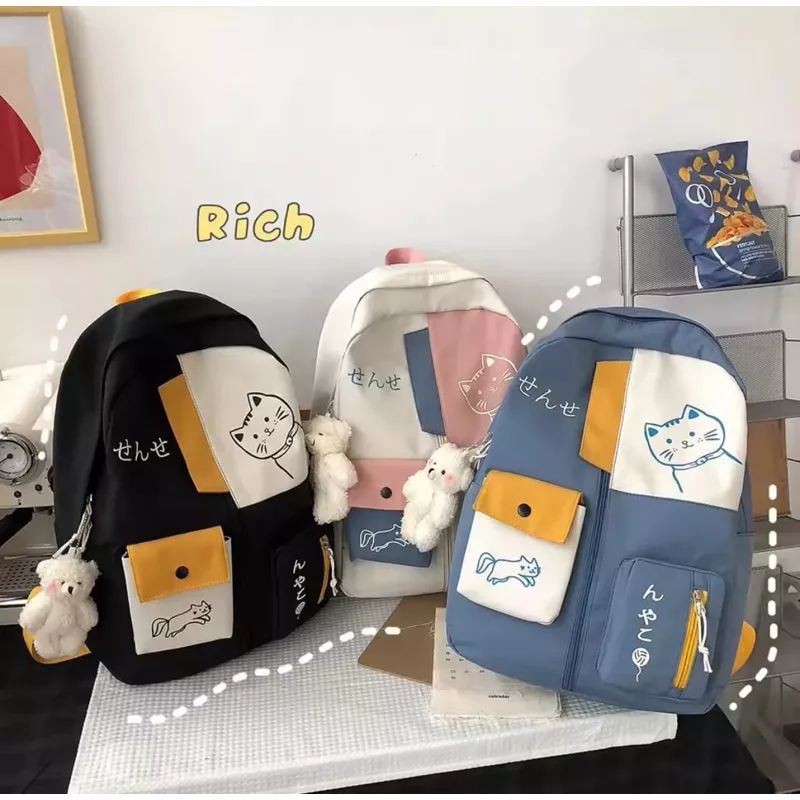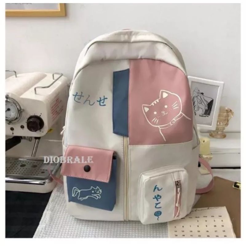 Tas Ransel Sekolah Anak SD Kucing Kanvas Trendi