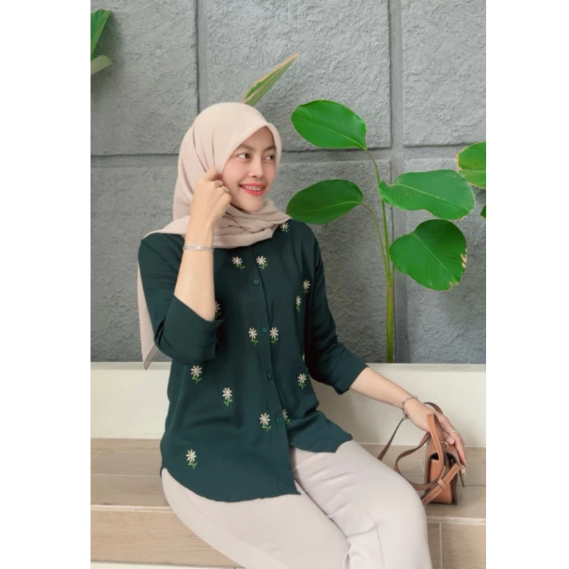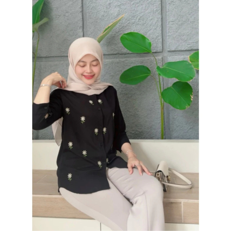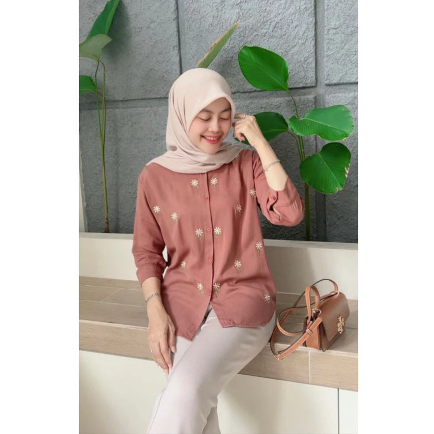 Atasan Wanita Kekinian Rivela Rayon Twill Series Premium Blouse Wanita Motif Polos Bordir Bunga Lengan 7/8 Best Seller