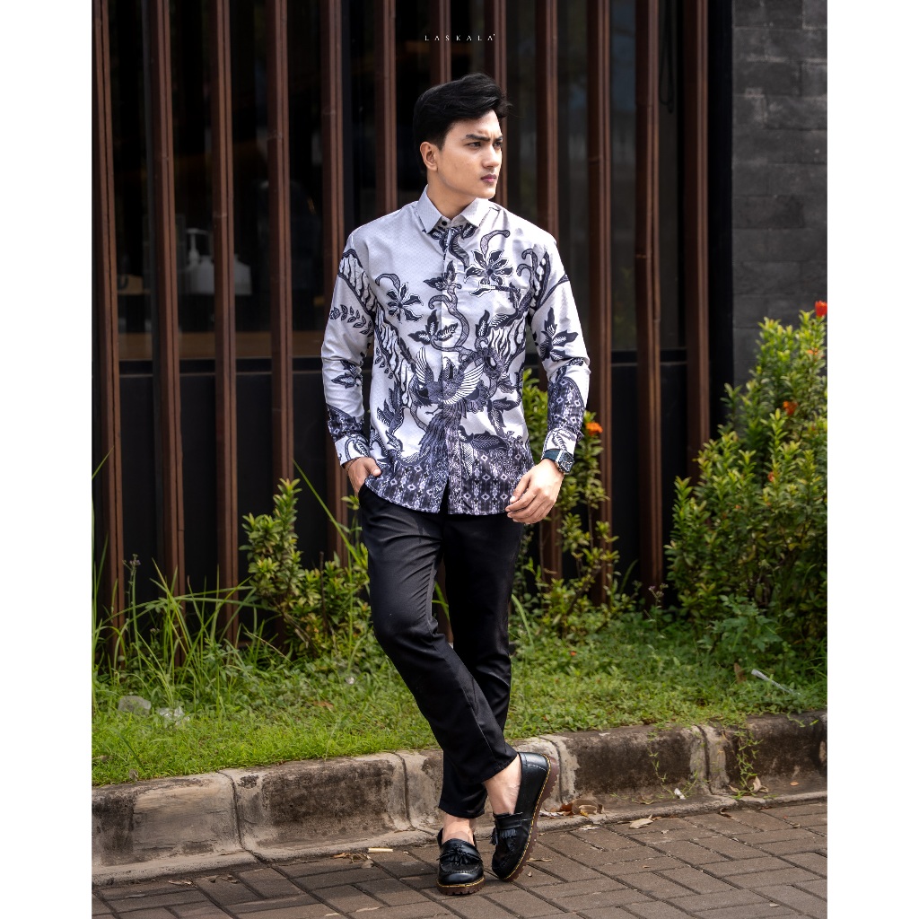 Laskala Batik Premium Tondano Grey Kemeja Batik Pria Slimfit Lengan Panjang