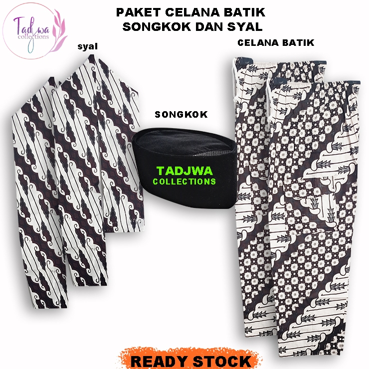 SETELAN CELANA BATIK BOIM SYAL DAN PECI UNTUK ANAK DAN DEWASA