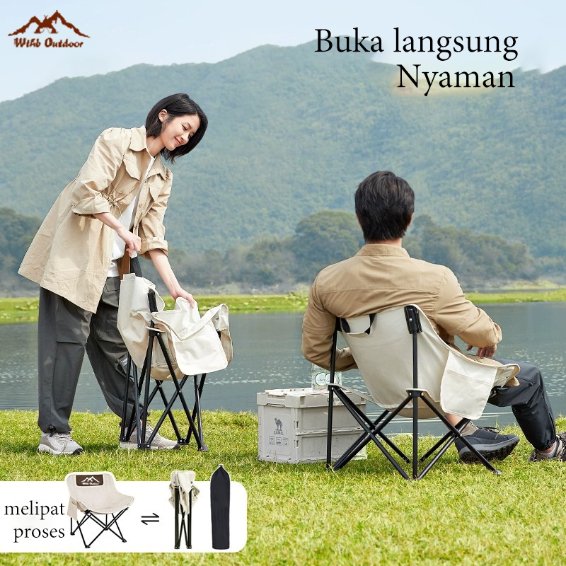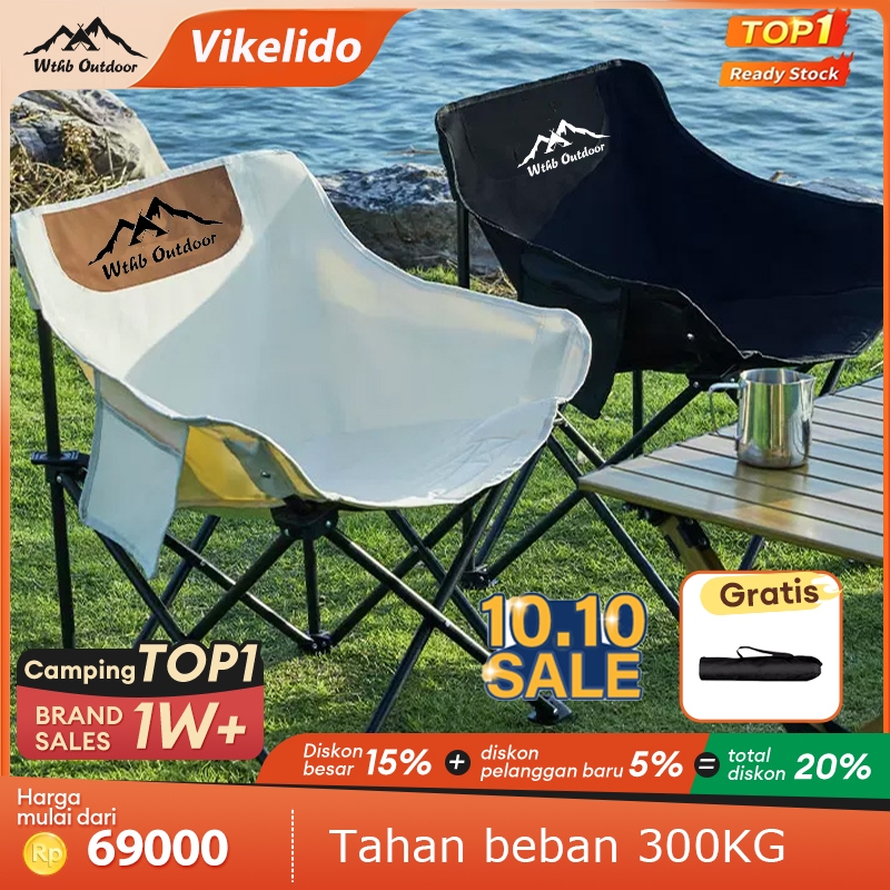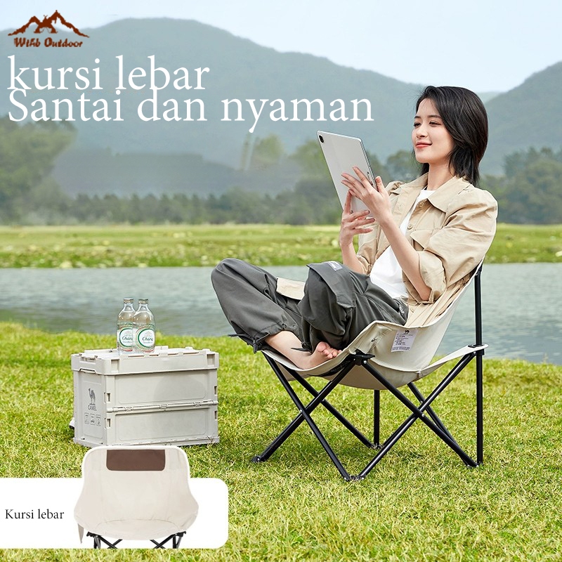 Kursi Lipat Outdoor Bulat Moon Kursi Mancing Camping 600D Kain Oxford Kursi Pantai Lipat Portable
