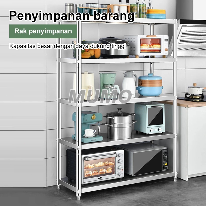 Rak Susun Stainless Steel Rak Dapur Rak Gudang Rak Oven Rak 5 Susun Rak Penyimpanan Serbaguna