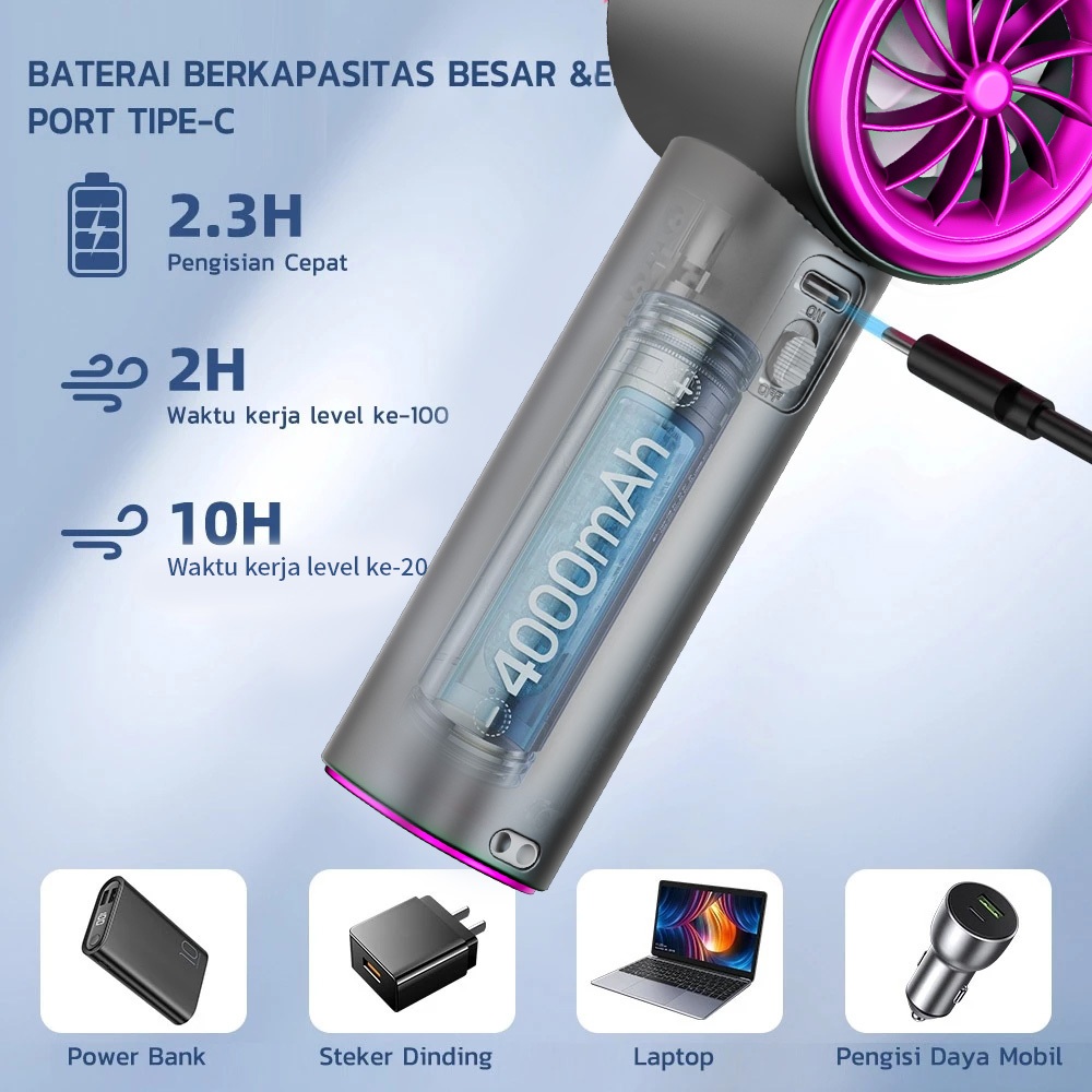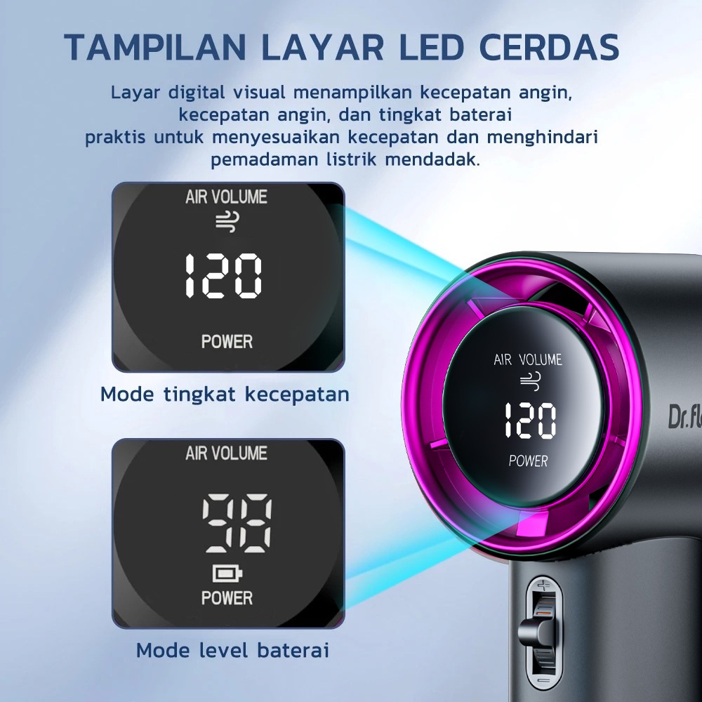 【Dr.flash 】Barang spot- High-speed kipas 120 Gear Wind kipas angin Digital Display Adjustable Turbo kipas tangan