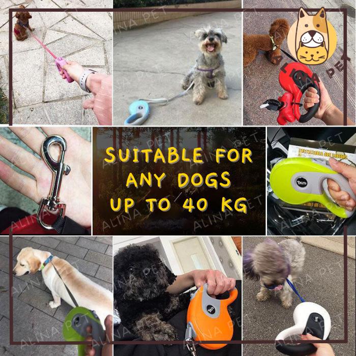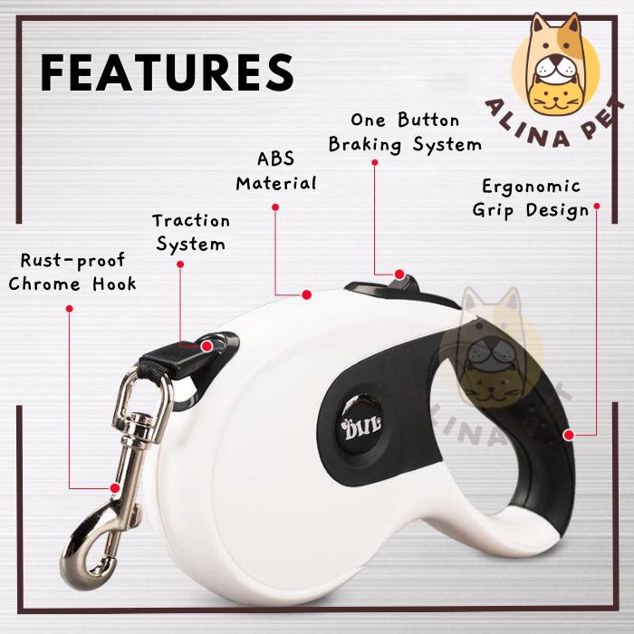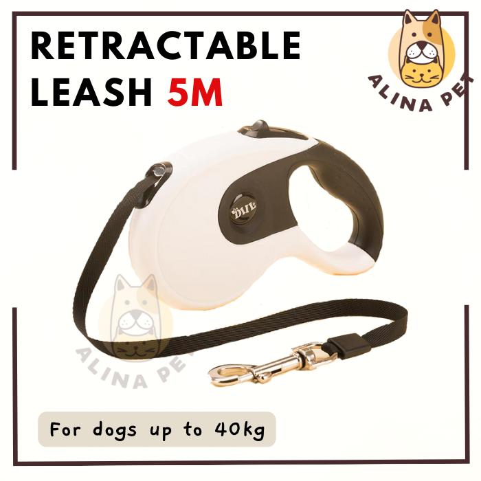 TALI TUNTUN ANJING 5M / DOG LEASH RETRACTABLE / PET DOG LEAD - 'WHITE, 5 METER