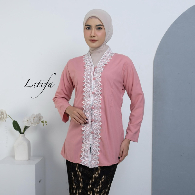 Kebaya Encim Modern Renda Motif Bunga Bahan Katun Mikro Lengan Panjang