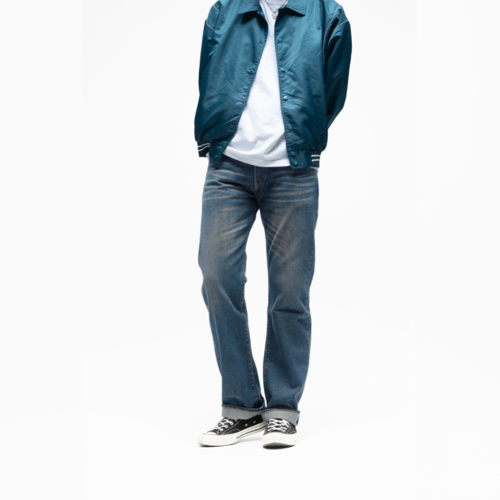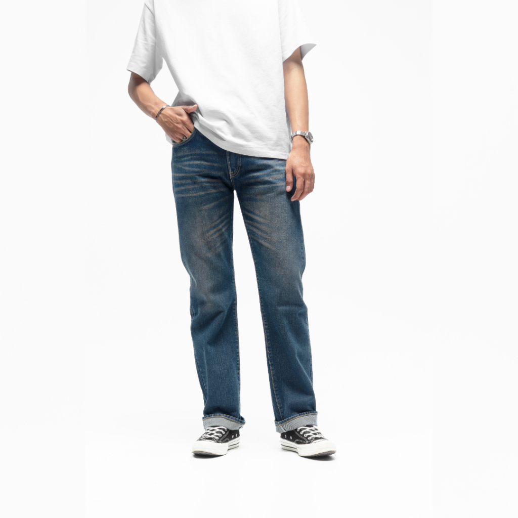 Volkvog Jeans Midtown Straight Celana Panjang Washed Denim Pria Slim Straight Biru