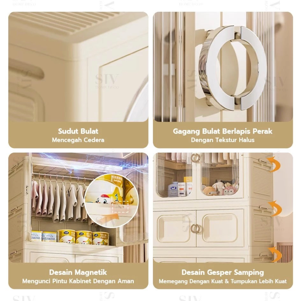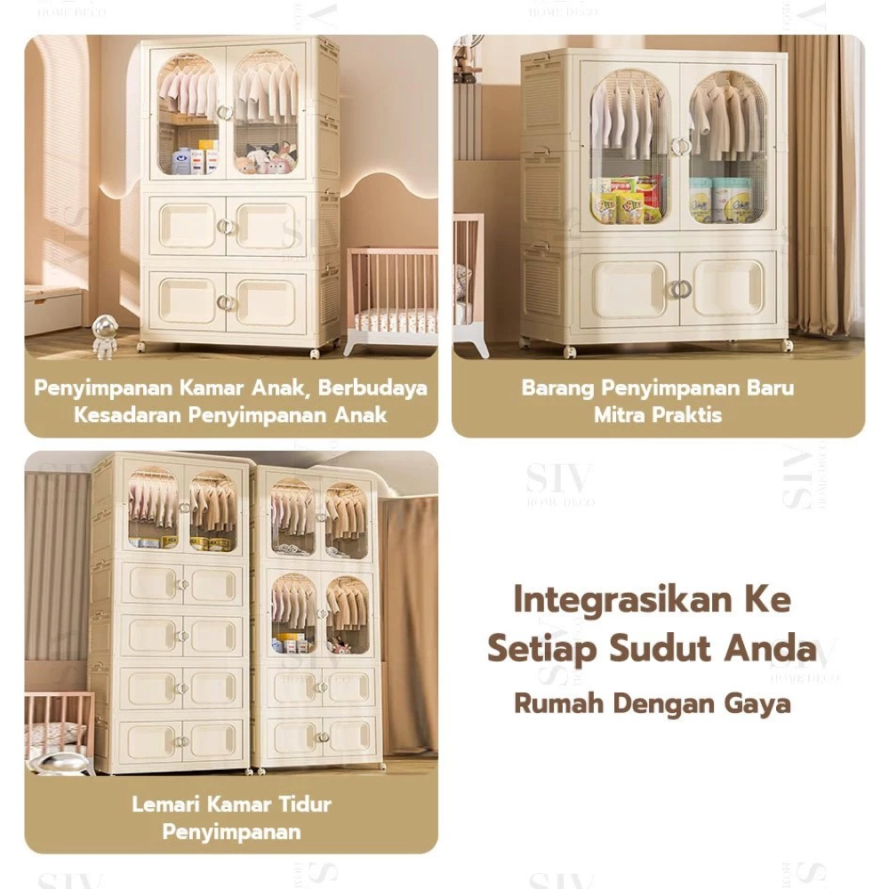 【Ekstra Tebal 90cm】SIV Lemari Baju Bayi Anak Plastik Lemari Pakaian Estetik Minimalis Dengan Roda
