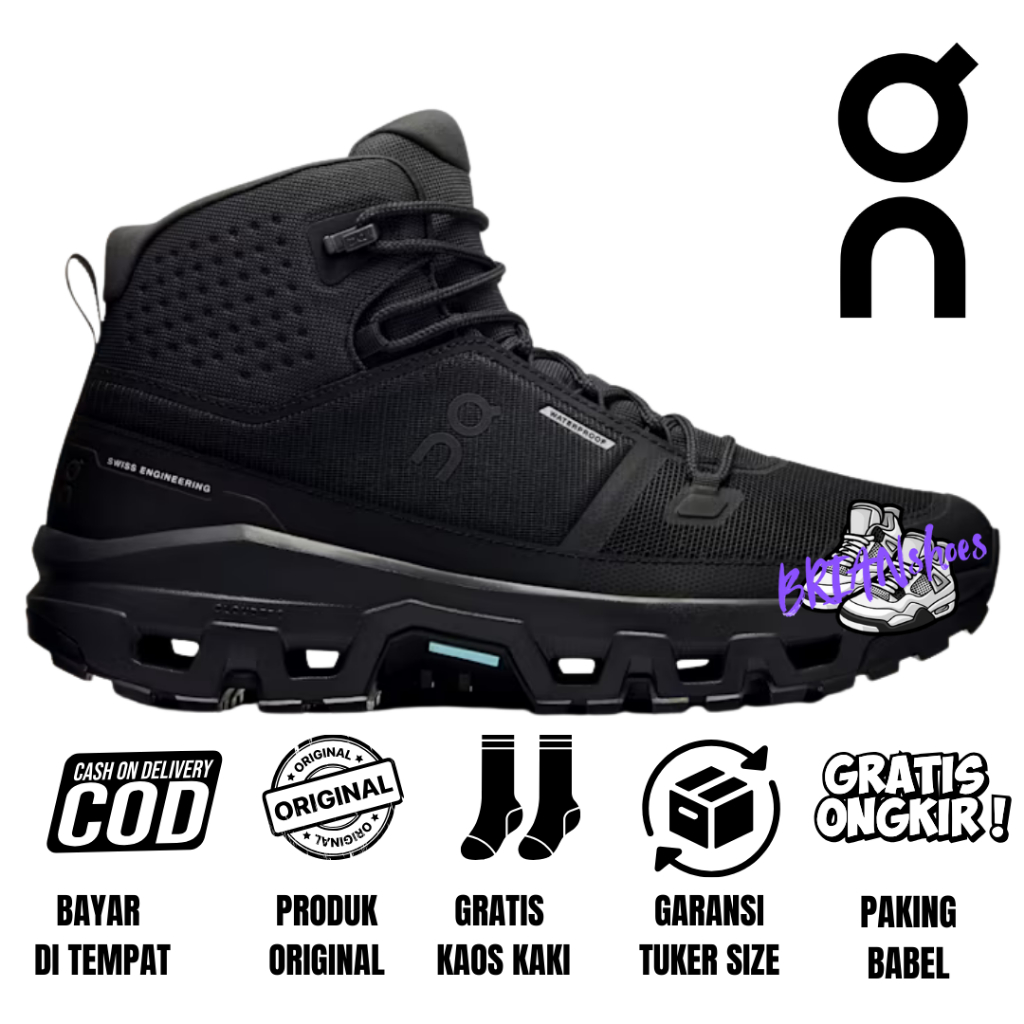 Sepatu Hiking Trailrun On Cloudrock Mid Waterproof Black Black Original