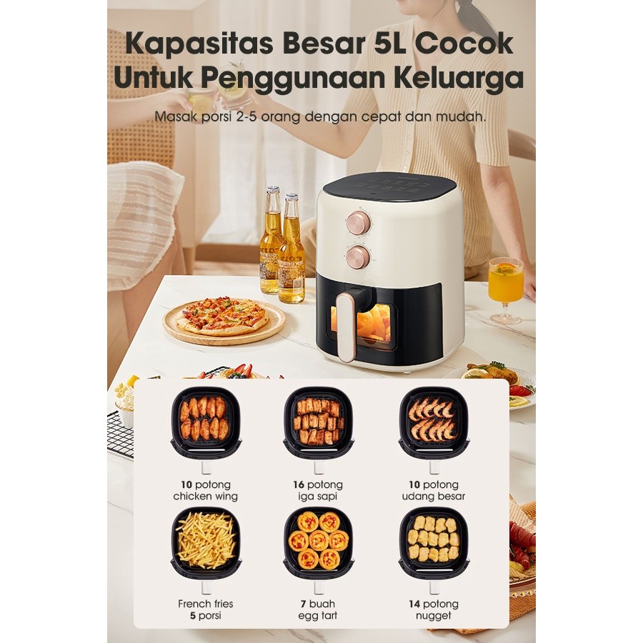 SAMONO Aesthetic Transparan Air Fryer 5L 700W Low Watt SNI Hemat Listrik Mesin Penggoreng Tanpa Minyak SW-AFW50