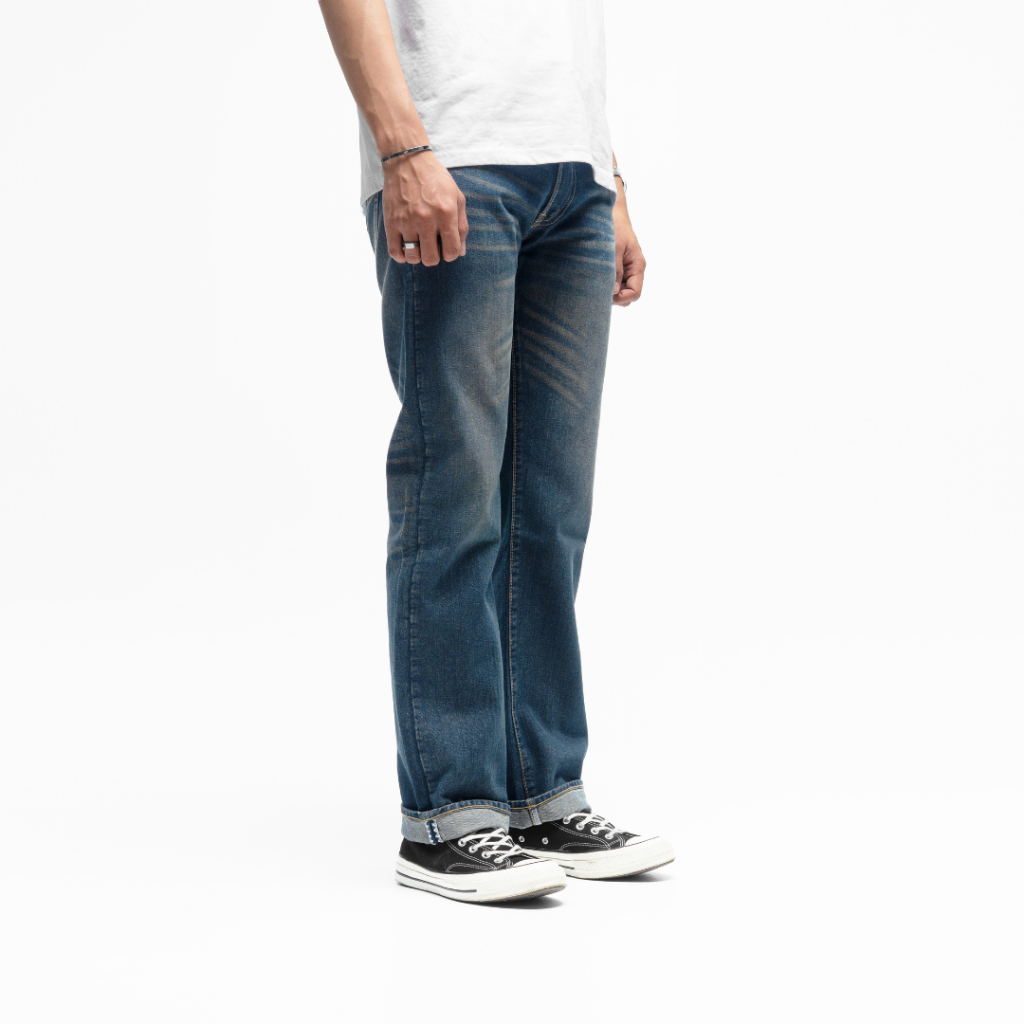 Volkvog Jeans Midtown Straight Celana Panjang Washed Denim Pria Slim Straight Biru