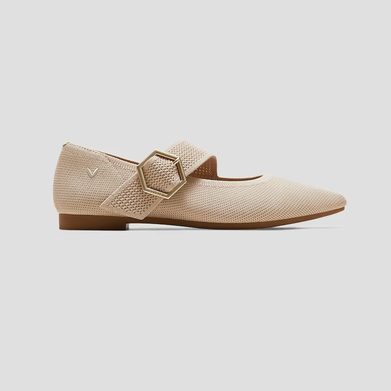 VIVAIA Sepatu Wanita Pointed-toe Mary-Jane Flats (Maria) - Almond | Grey Silver | Black | Rich Grey Houndstooth | Metallic Black | Black Tweed