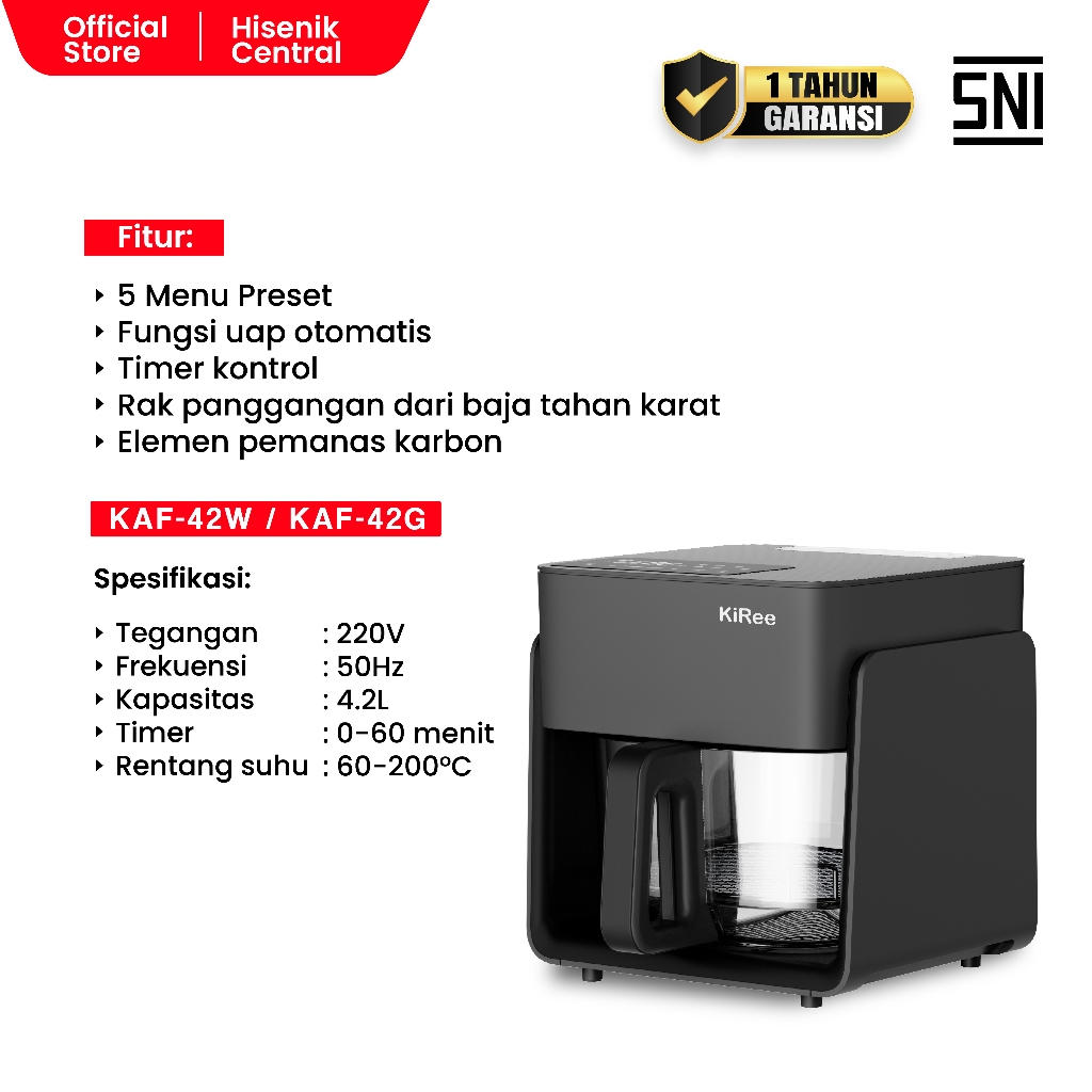 KiRee Air Fryer Transparan 4.2L Steam Fitur Penggorengan Tanpa Minyak Low Watt Sistem Pendingin di Patenkan Kendali Sent