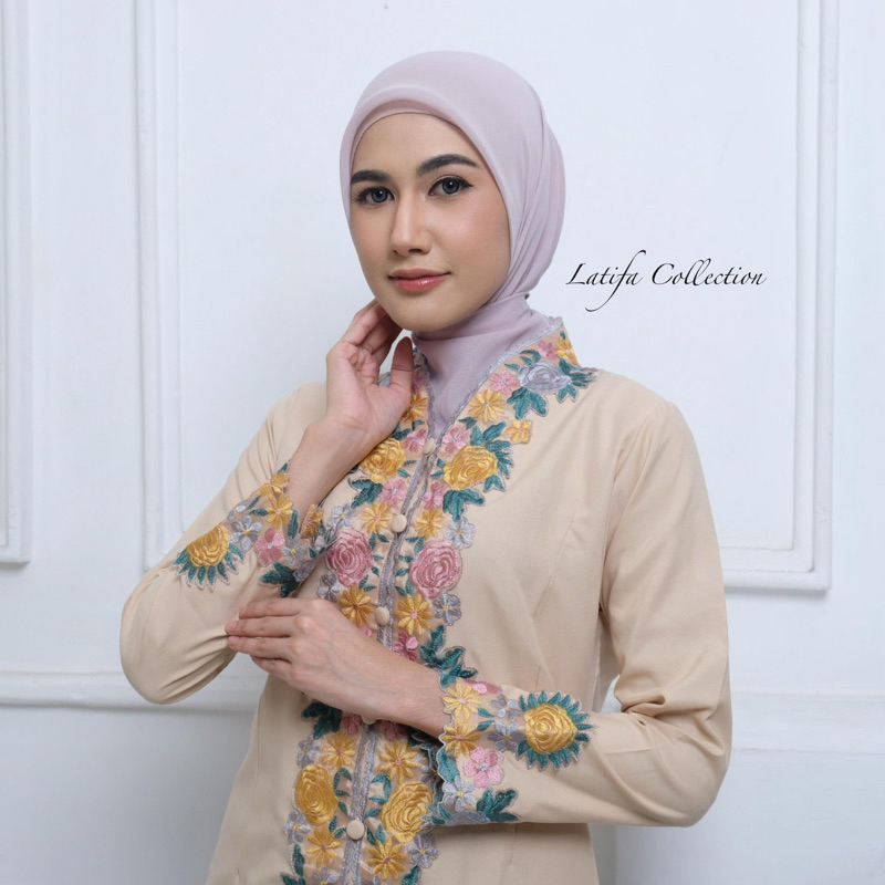 Kebaya Encim Bordir Warna Motif Bunga Lengan Panjang Bahan Katun Mikro