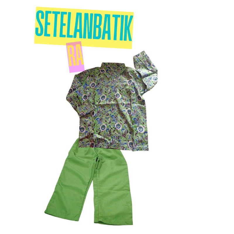 Setelan Batik RA Hijau Katun Lengan Panjang Anak