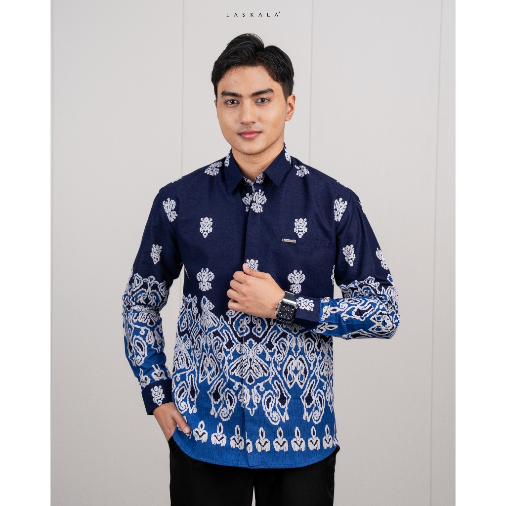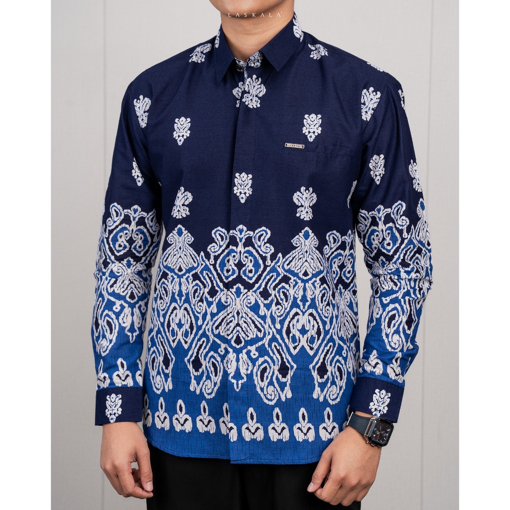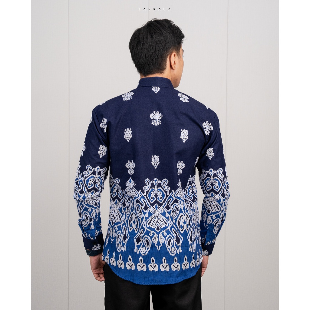 Laskala Batik Premium Waerebo Blue Kemeja Batik Pria Slimfit Lengan Panjang