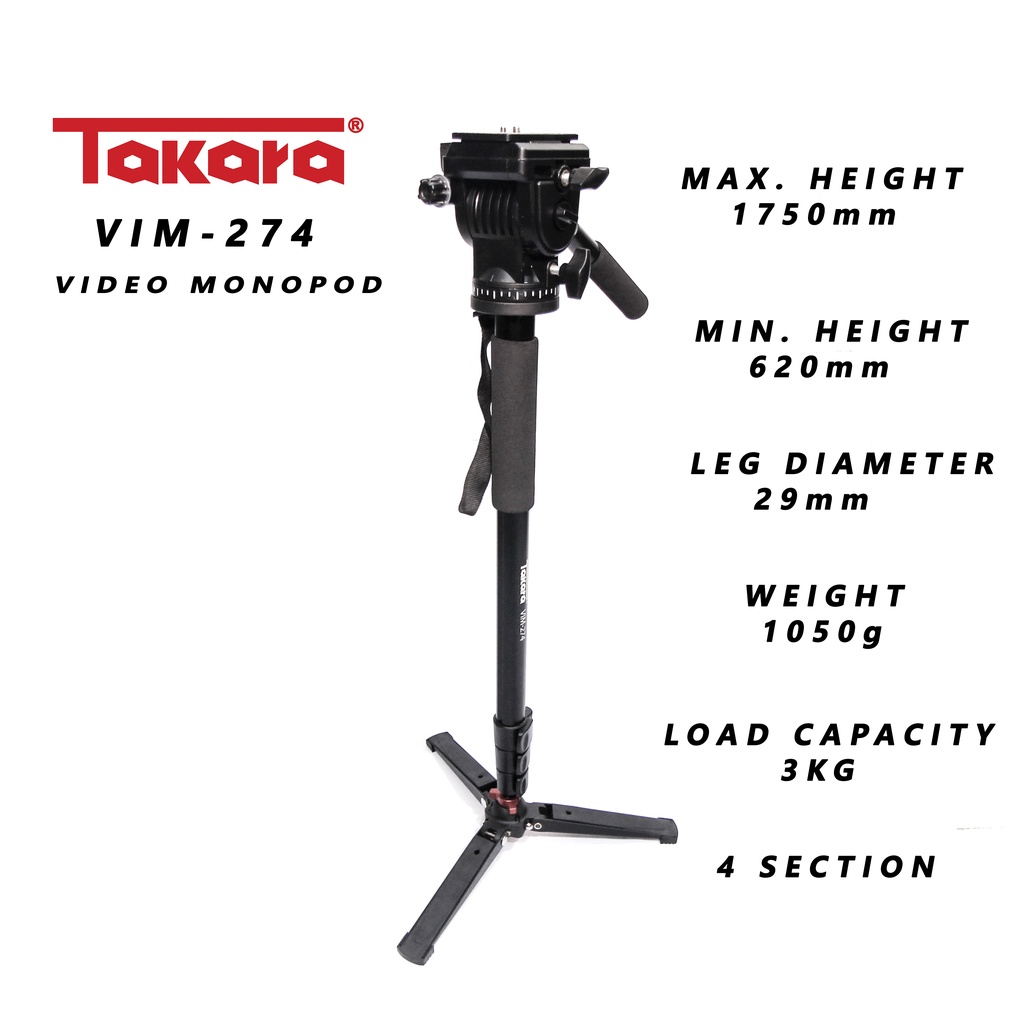 Takara VIM-274 Fluid Head Video Monopod untuk kamera camcorder DSLR HP
