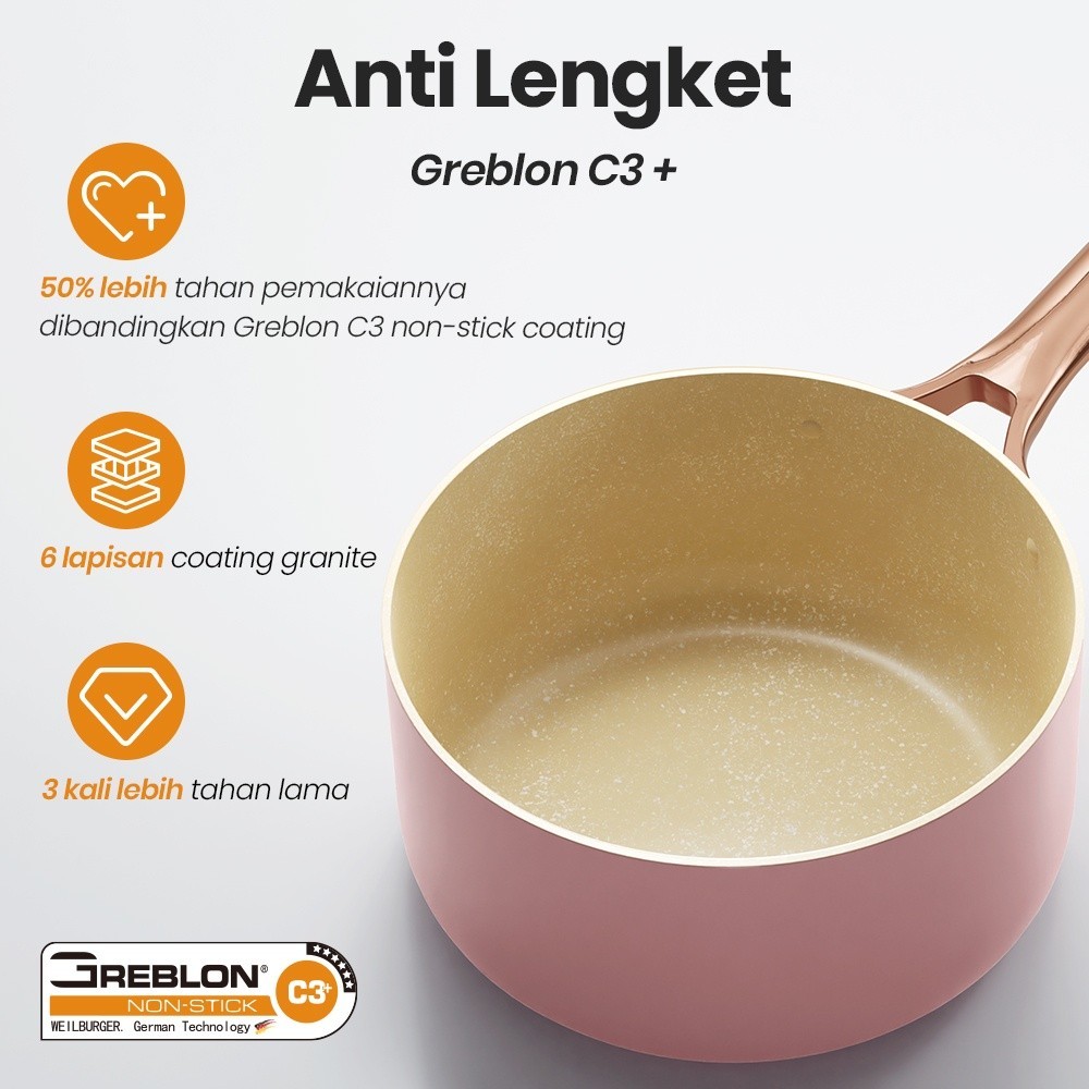 Mecоо Most Aesthetic Premium Non-Stick Sauce Pan With Lid 18cm SGS FDA LFGB Sertifikasi PFOA Free...........