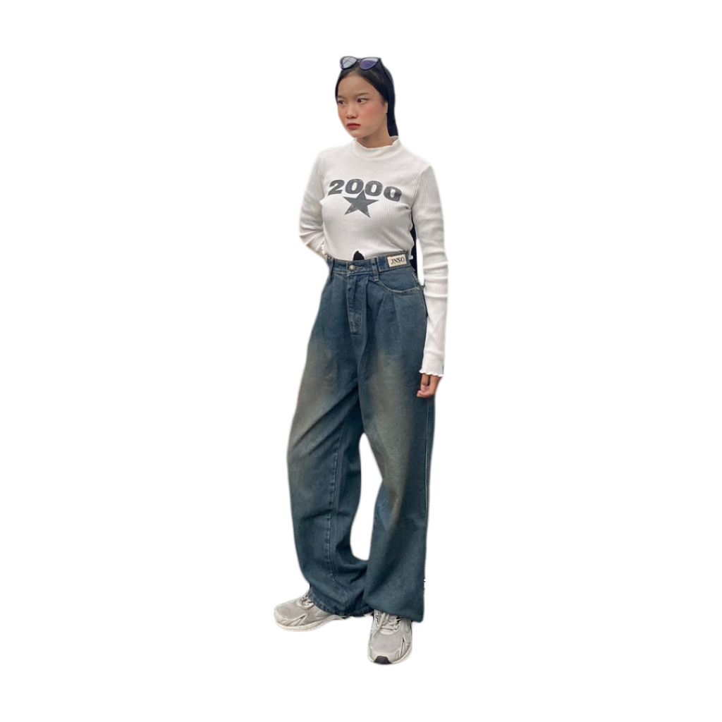 Jiniso - Highwaist Adjustable Super Baggy Jeans 880 Hibernation