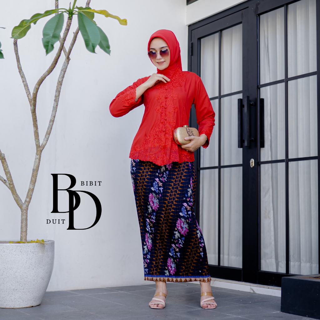 Baju Atasan Kebaya Encim Bordir Modern Jumbo Motif Bunga Lengan Panjang Bahan Katun