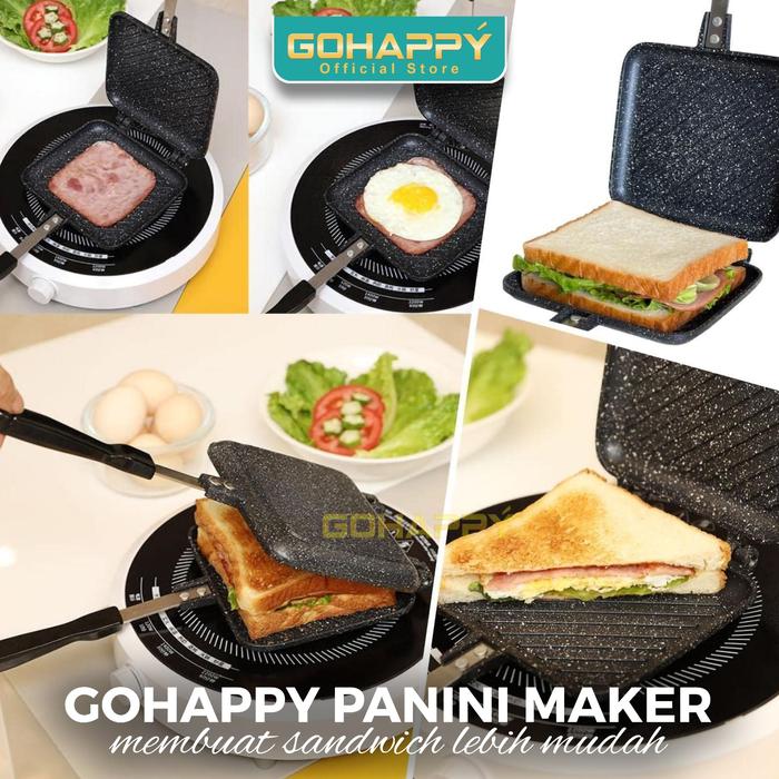 Gohappy Panci Pembuat SANDWICH PANINI MAKER Alat Cetakan kue ROTI PANGGANG Grill pan steak ayam