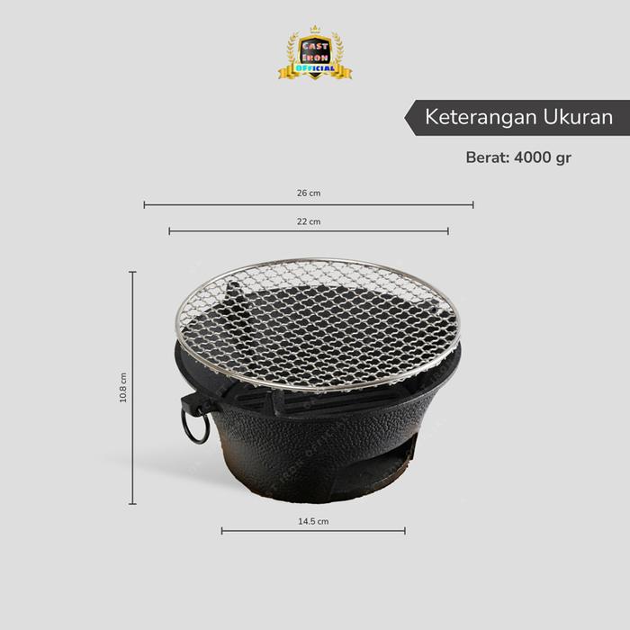 Cast iron charcoal grill barbeque 26 cm bbq arang FREE TATAKAN KAYU Kitchenware