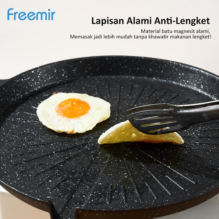 SPECIAL NEW LAUNCH freemir Grill pan 32 cm Anti Lengket Gagang Kayu Alat Masak Pemanggang Serbaguna