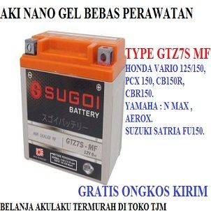 AKI ACCUE SUGOI GTZ7S MF NANO GEL GRATIS ONGKOS KIRIM HONDA VARIO 125/150 FI ESP CBS CB150R CBR150 PCX SONIC 150 NOT GS