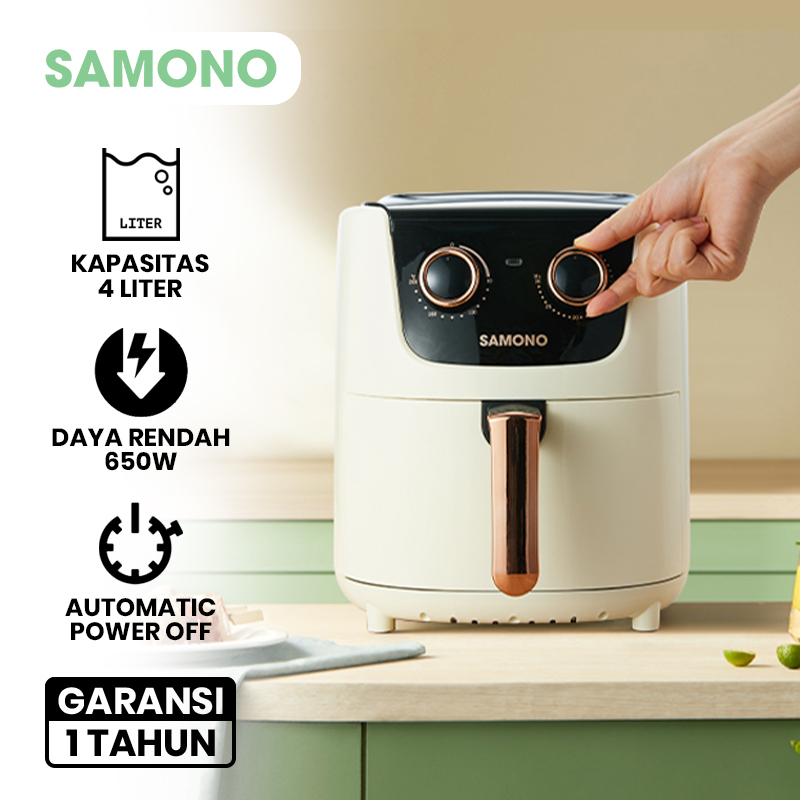 SAMONO Air Fryer 4 Liter 650 Low Watt Mesin Penggorengan Tanpa Minyak Touch Screen Magic Fryer Pot 7 Mode Masak SW-AFW04