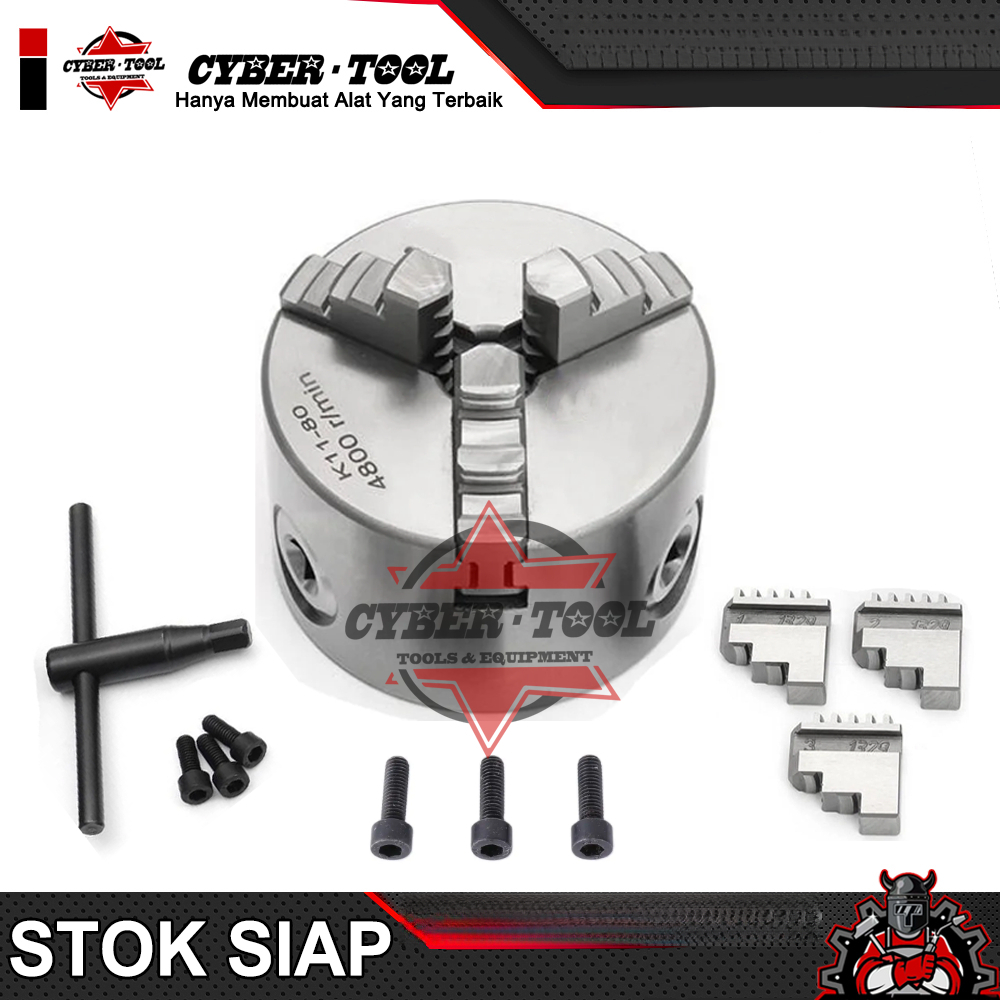 K11-80 Chuck Bubut 3" 3 Jaw | Claw Bubut 3 Jaw Catok Bubut 3 Inch cekam bubut kepala mesin bubut K11-80