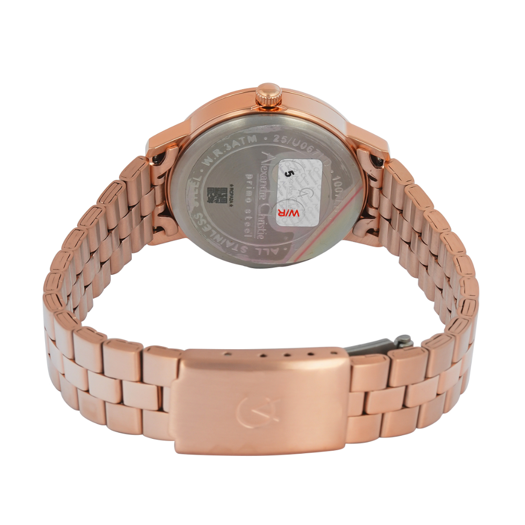 Jam Tangan Wanita Alexandre Christie Primo Steel AC 1007 LDBRGSL Silver Dial Rose Gold Stainless Steel Strap